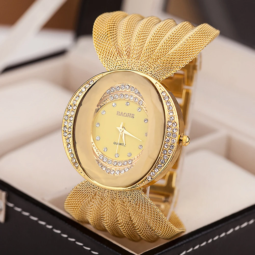 cheap Top Brand High Quality Fashion Women Rhinestone Oval Dial Wide Mesh Band Analog Quartz Wrist Watch Lady Dress Clock часы женские RECOMMENDED TODAY Cheap BUY Limited