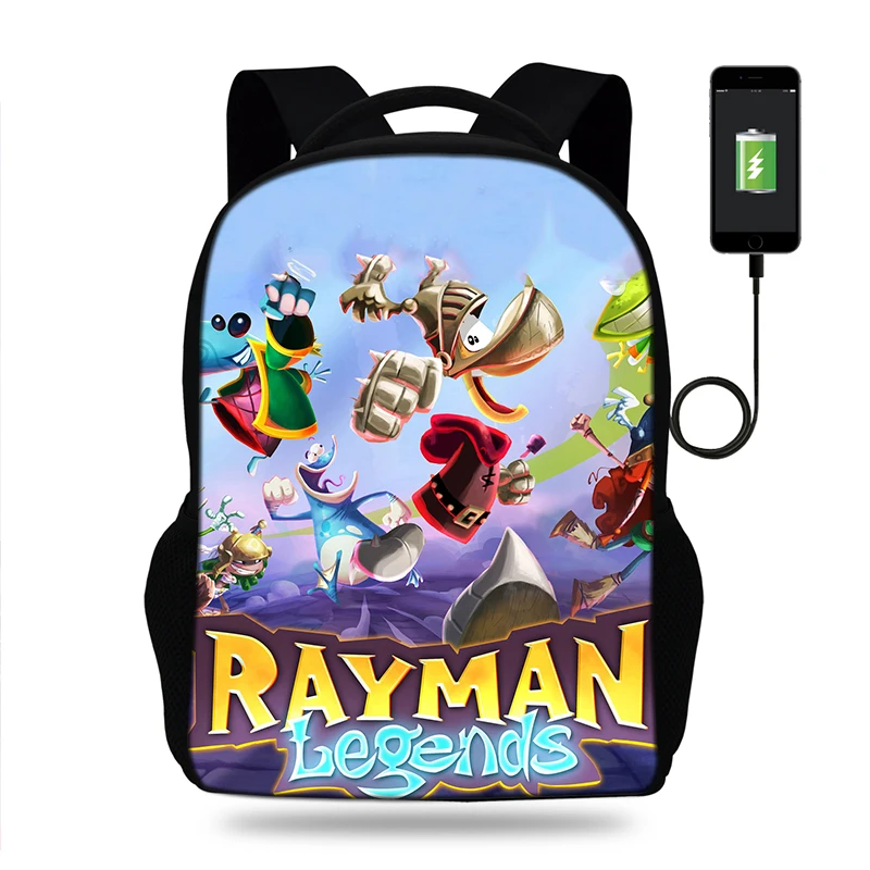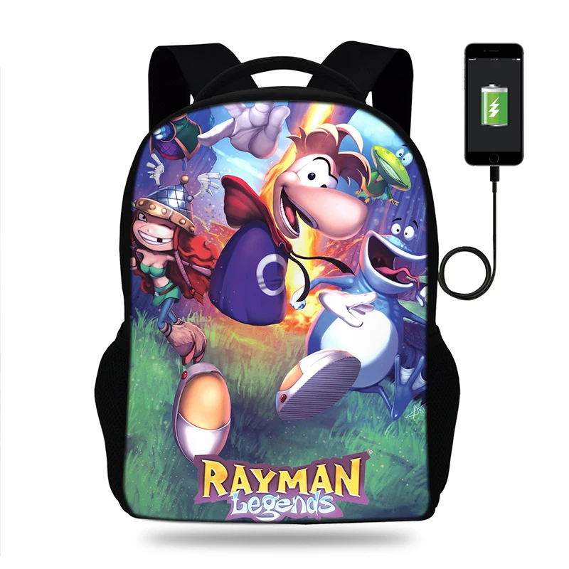 HOT OFFERS 17inch Rayman Legends Adventures Backpack Mens USB PORT Backpacks For Teenager Boys Girls School Bags Laptop Daily Inexpensively Best Price BUY Now RECOMMENDED TODAY