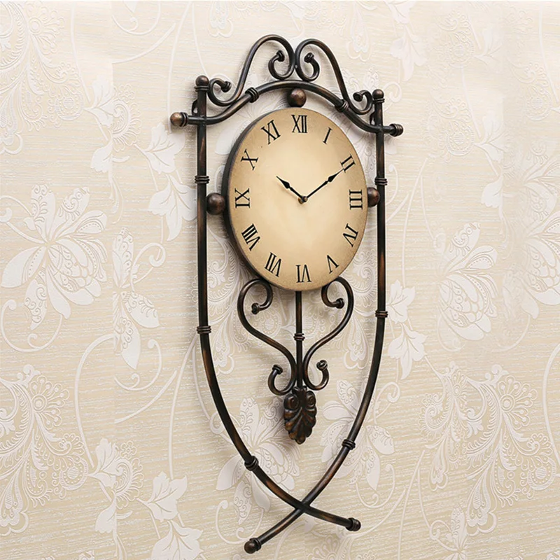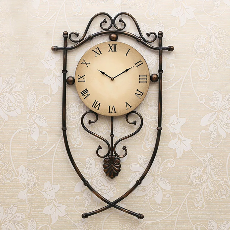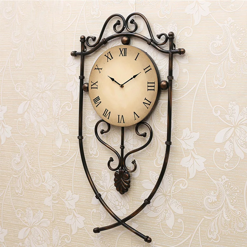 HOT OFFERS American Clock The Living Room Retro Big Iron Wall Circular Silent European Style Personality Hanging Promo Online Cheap SPECIAL PRICE Limited