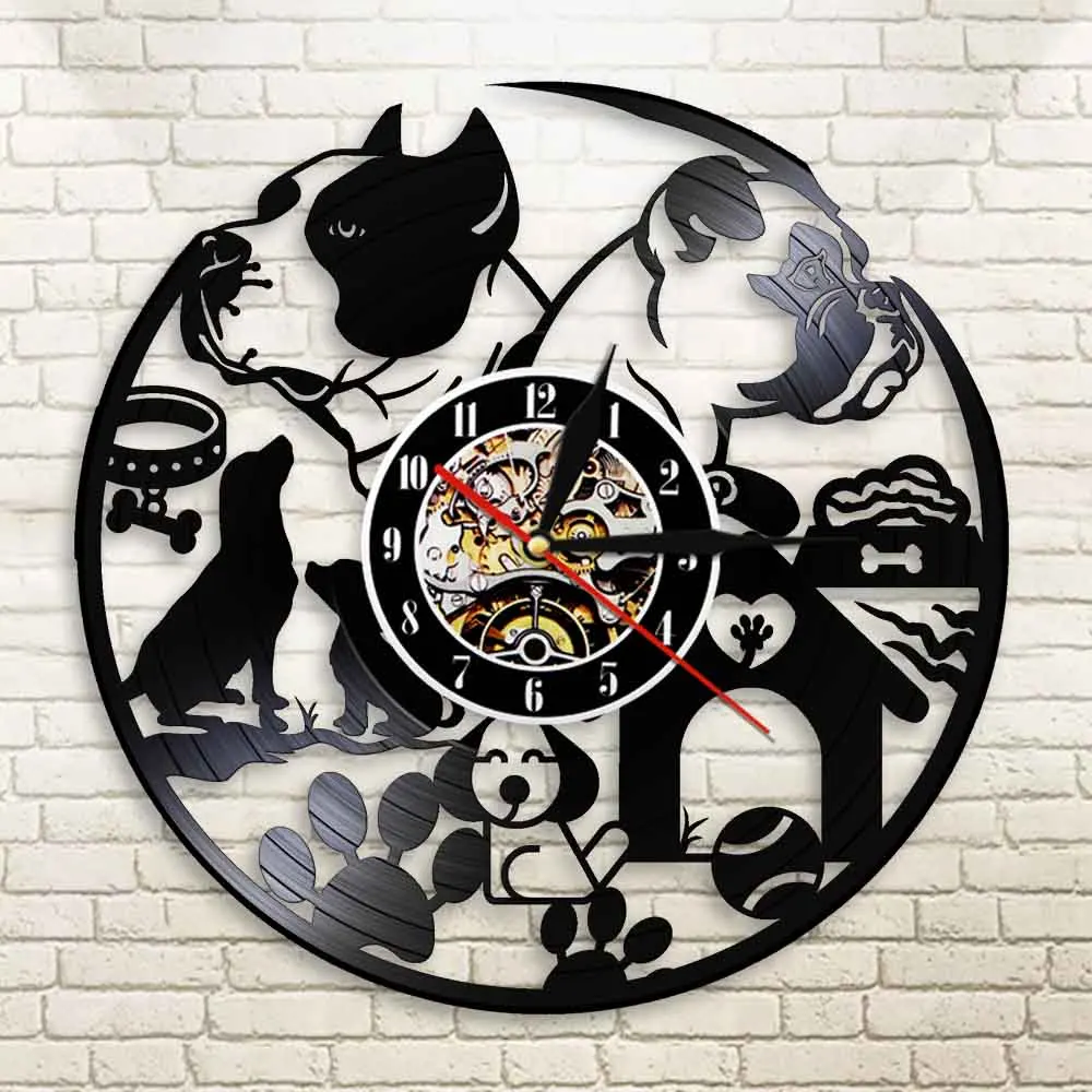 SPECIAL OFFERS I Love Dogs Dog Pet Shop Decorative Wall Clock Puppy Dog Breeds Vinyl Record Wall Clock Hanging Watch Dog Lovers Pet Owners Gift Online