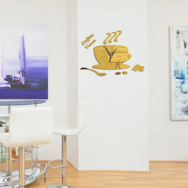 SPECIAL OFFERS BUY Now 1 SET 2019 Modern DIY Clock Coffee Cup Wall Sticker Unique Acrylic Decor Kitchen Living Room Bedroom Decors 35*25cm LIMITED DISCOUNT TODAY