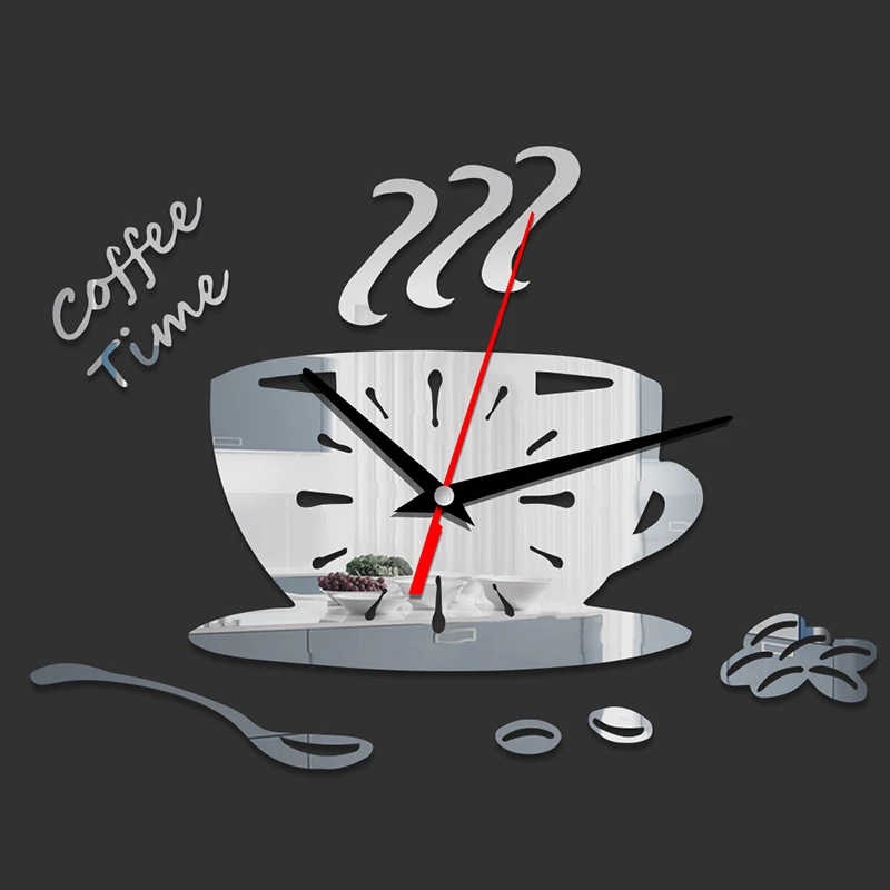 SPECIAL OFFERS BUY Now 1 SET New Modern DIY Clock Coffee Cup Wall Sticker Unique Acrylic Decor Kitchen Living Room Bedroom Decors 35*25cm RECOMMENDED TODAY