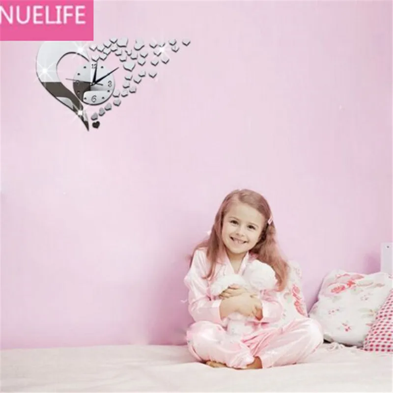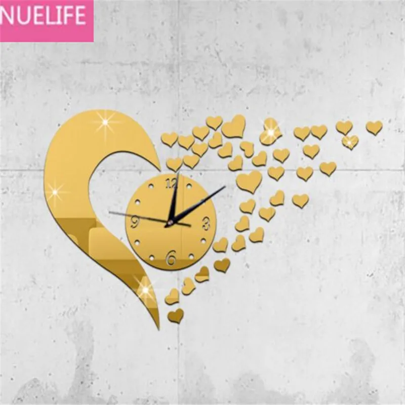 SPECIAL OFFERS BUY Now 35x55cm 3D Acrylic Love Design Mirror Clock Wall Sticker Bedroom Wedding Room TV Sofa Background Decoration N2 RECOMMENDED TODAY