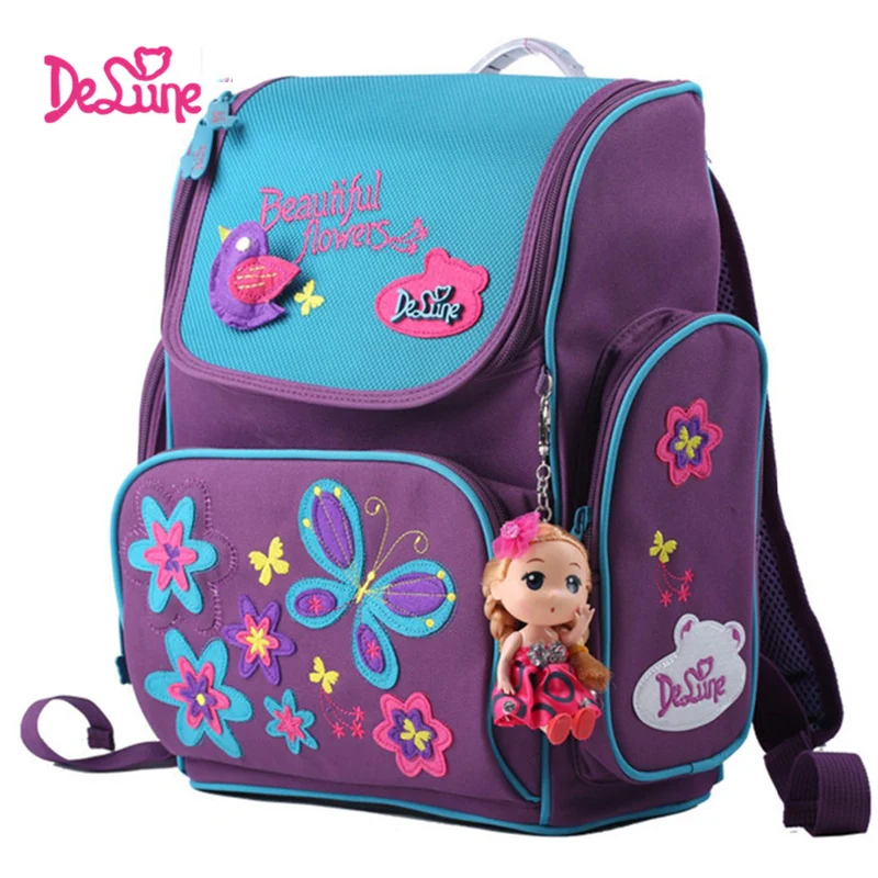 SPECIAL OFFERS BUY Now Delune Flower Butterfly Pattern School Bags For Girls Cartoon Children Orthopedic Backpacks Mochila Infantil Grade 1 3 LIMITED DISCOUNT TODAY