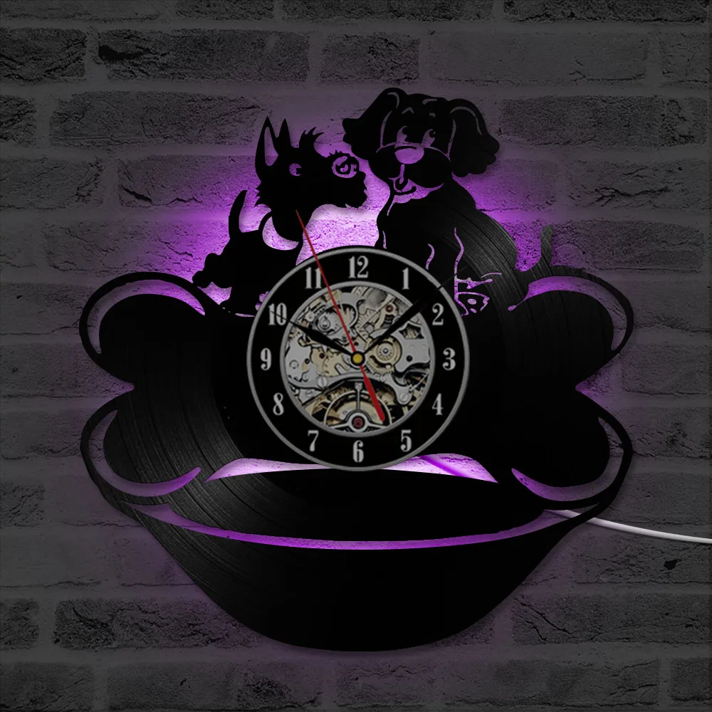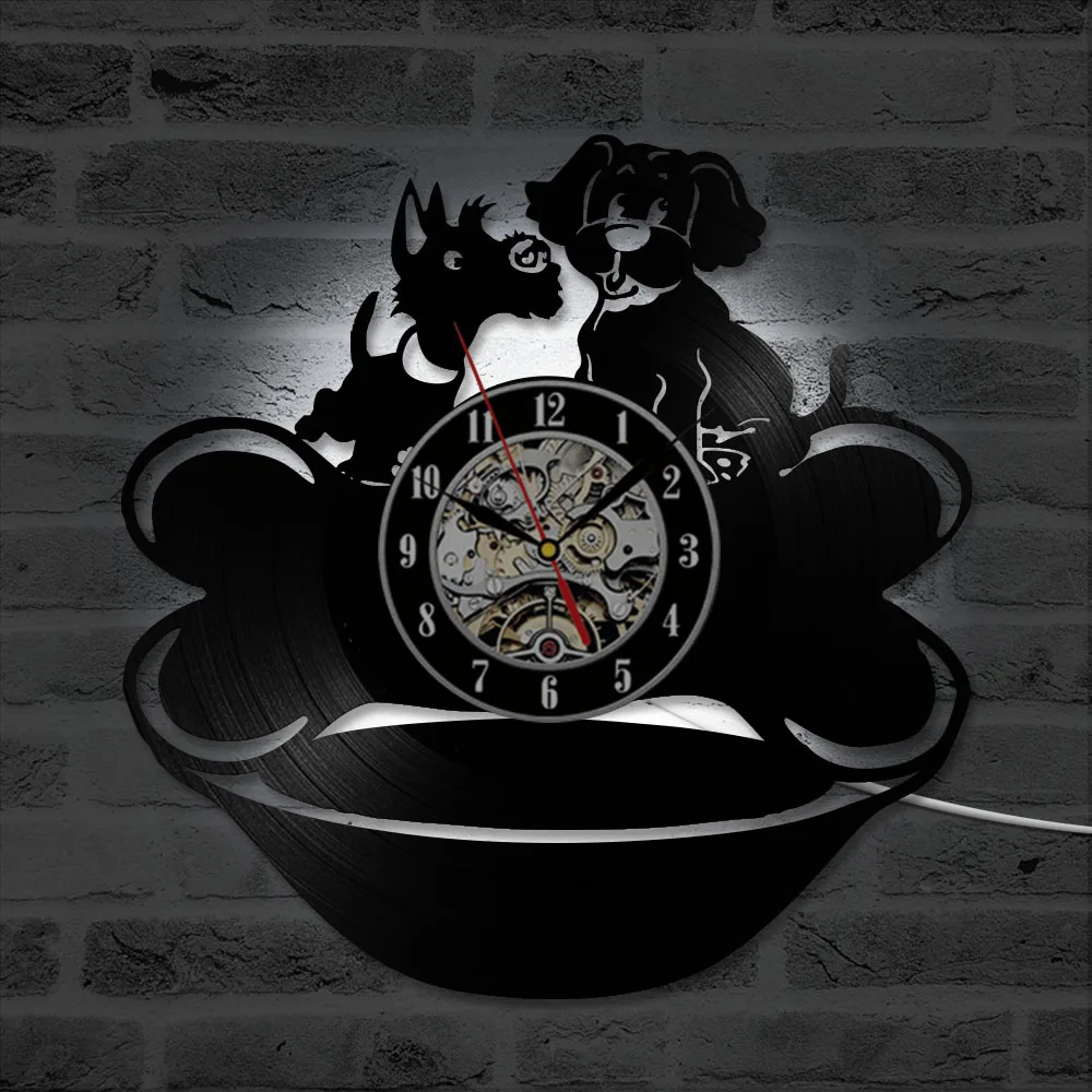 DISCOUNT definitely the Lovely Puppy Dogs Design Classic CD Vinyl Record Hanging Wall Clock Creative Decor LED Record Clocks Antique Hollow Wall Clock RECOMMENDED TODAY