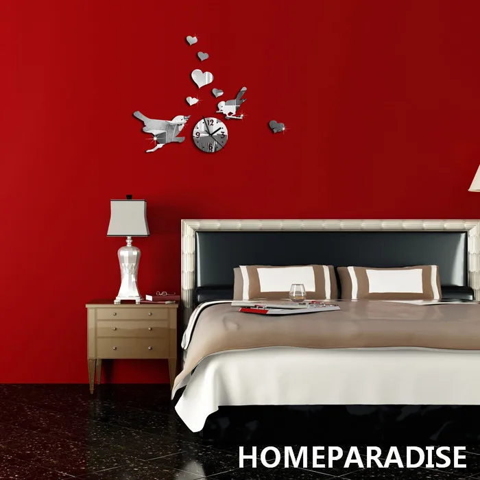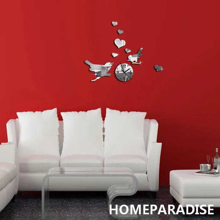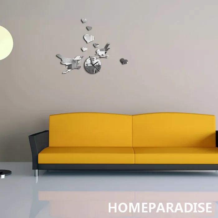 SPECIAL OFFERS Buy SPECIAL PRICE Silver Love Birds Hearts Art Mordern Luxury Design Diy 3d Crystal Mirror Wall Clock Sticker Living Room Bedroom Decor Limited