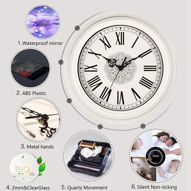 SPECIAL OFFERS 12 Inch Silent Non Ticking Round Wall Clocks, Decorative Vintage Style Roman Numeral Clock Home Kitchen Living Room Bedroom ( Online