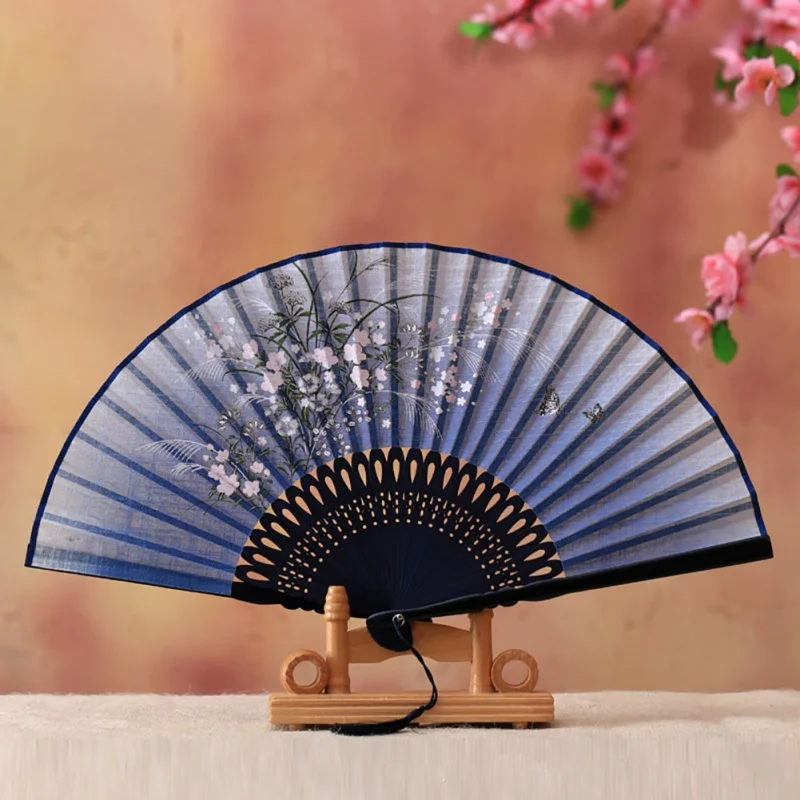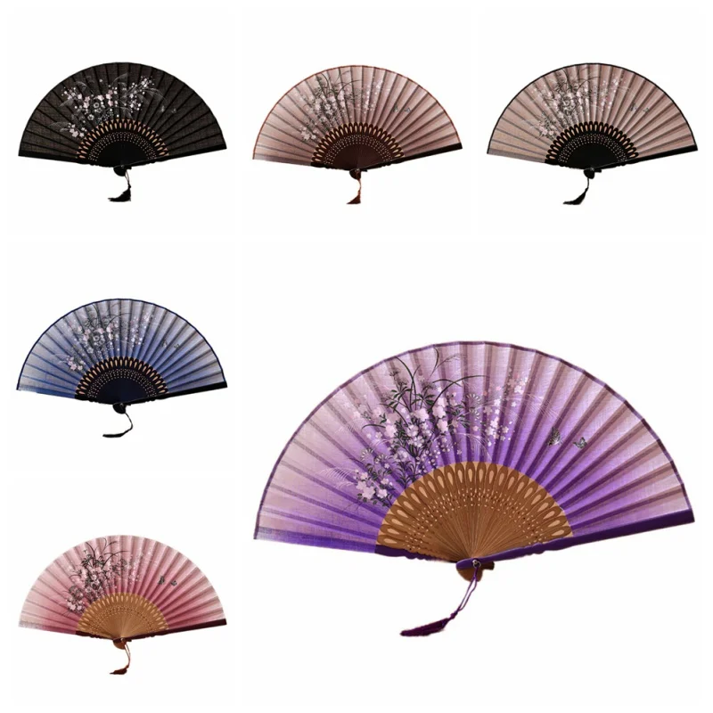 SPECIAL OFFERS Vintage Chinese Spun Silk Flower Printing Hand Held Fan Folding Hollow Carved Hand Fan Dancing Wedding Party Decoration Online