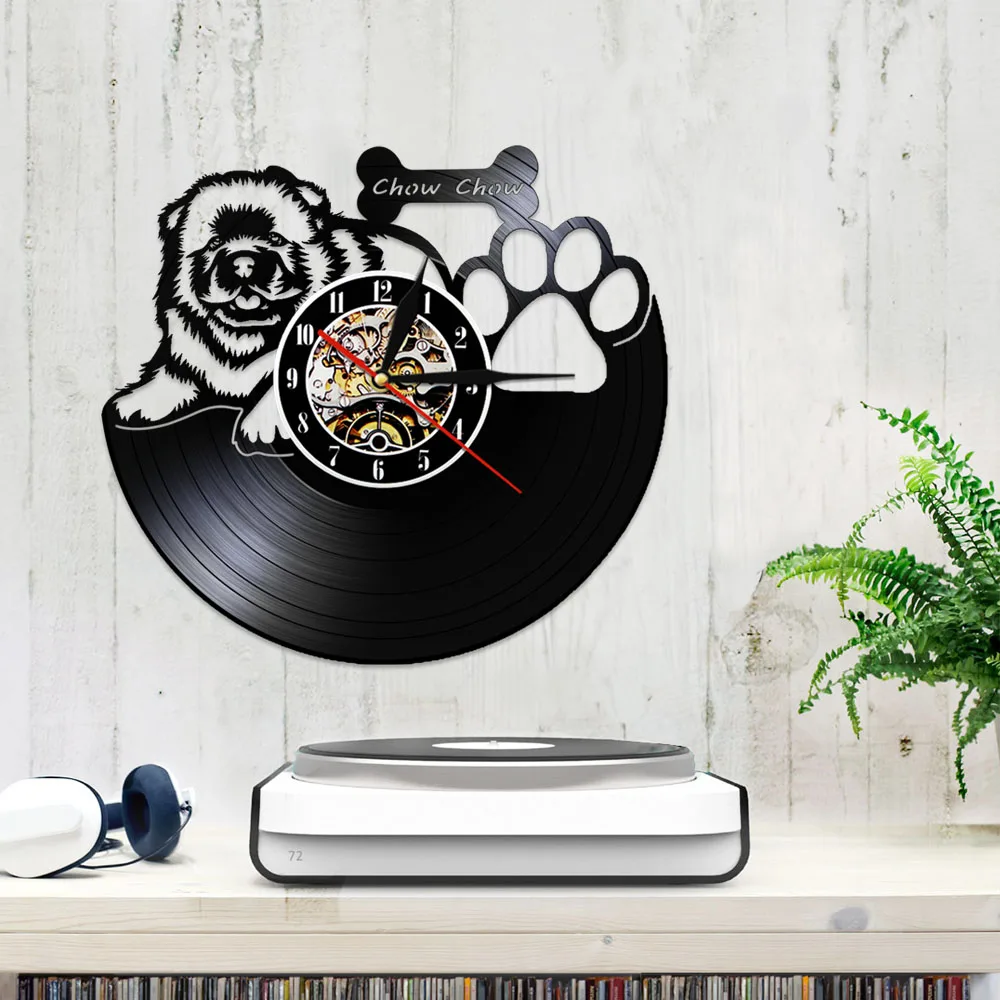 SPECIAL OFFERS Chow Chow Design Vinyl Record Design Wall Clock Fashion Creative Clock CD Vinyl Disc Wall Clock Love Dog Themed Pet Decor Art one of the best