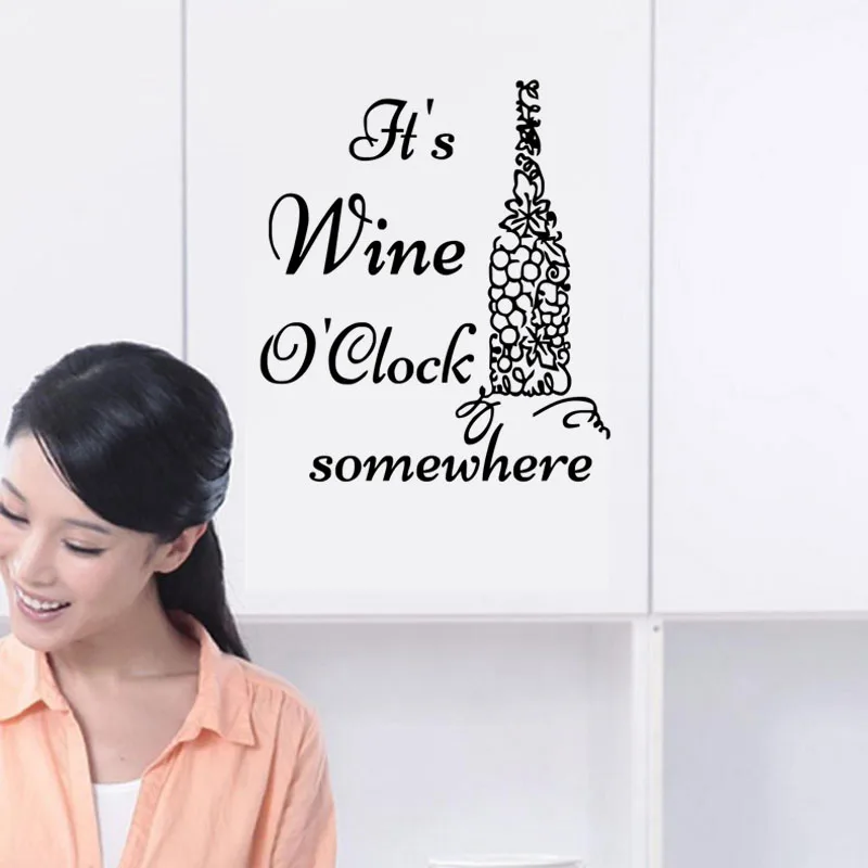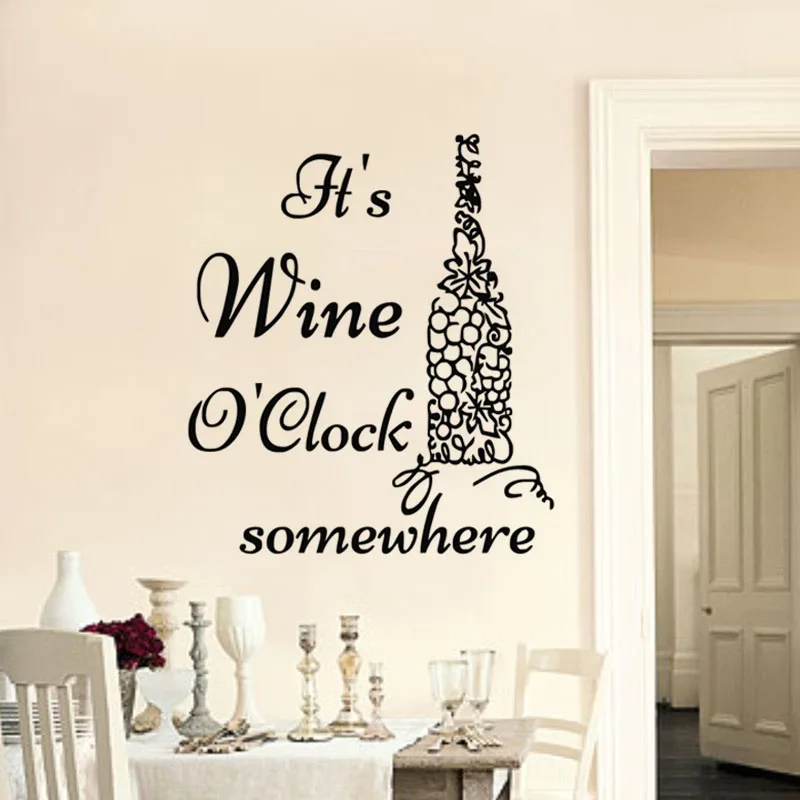 SPECIAL OFFERS It #039;S Wine I Clock Somewhere Wall Decals Quotes Vinyl Adhesive Sticker Grape Wine Bottle Kitchen Wall Stickers Home Decor Online