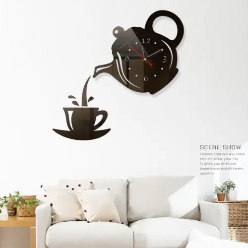 SPECIAL OFFERS 5 Colors Wall Clock Mirror Effect Coffee Cup Shape Cool Decorative Kitchen Wall New Arrival Home Decorative Wall Stickers Online