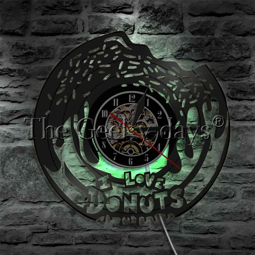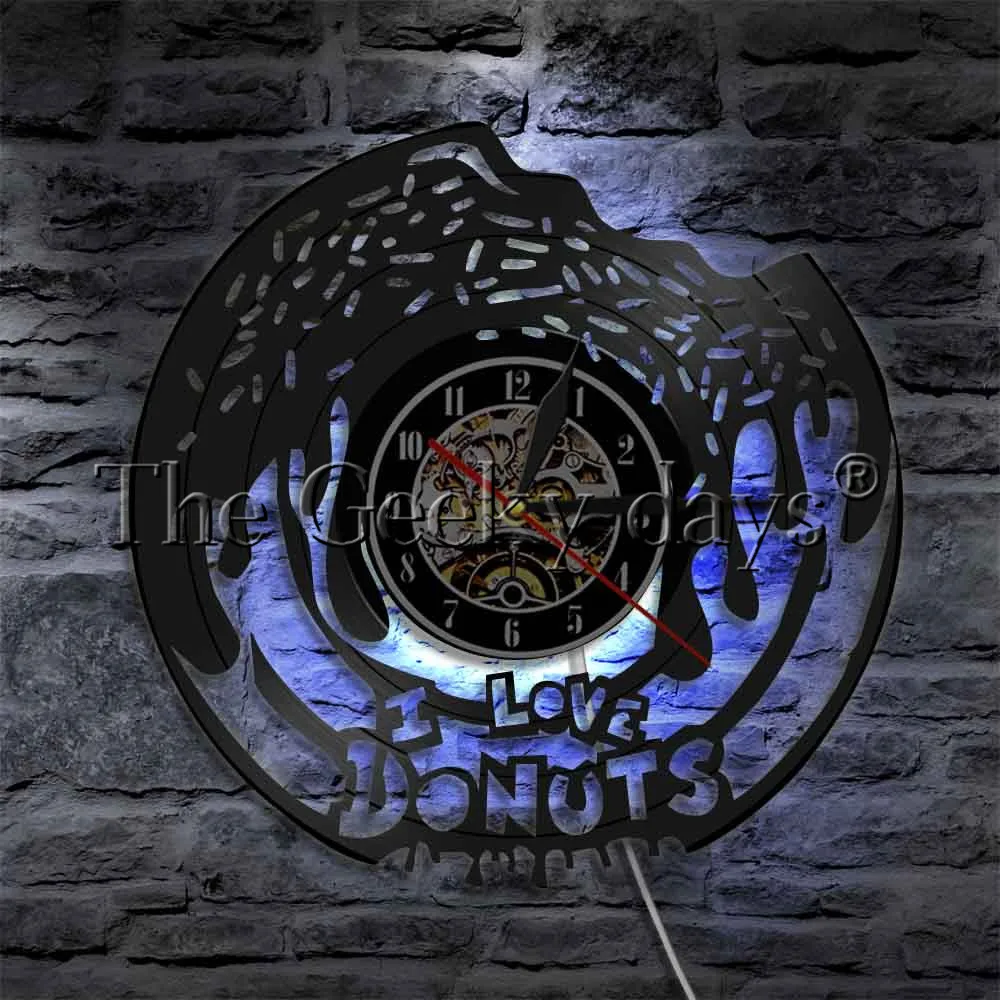 SPECIAL OFFERS 1Piece I Love Donuts Sweet Food Time Decorative Wall Lamp Vinyl Record Wall Clock Bakery Chef Coffee Shop LED Hanging Lamp one of the best