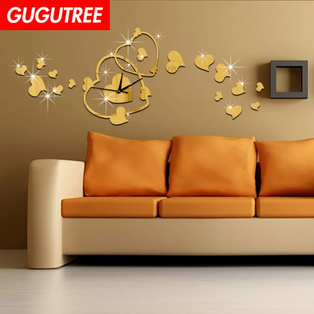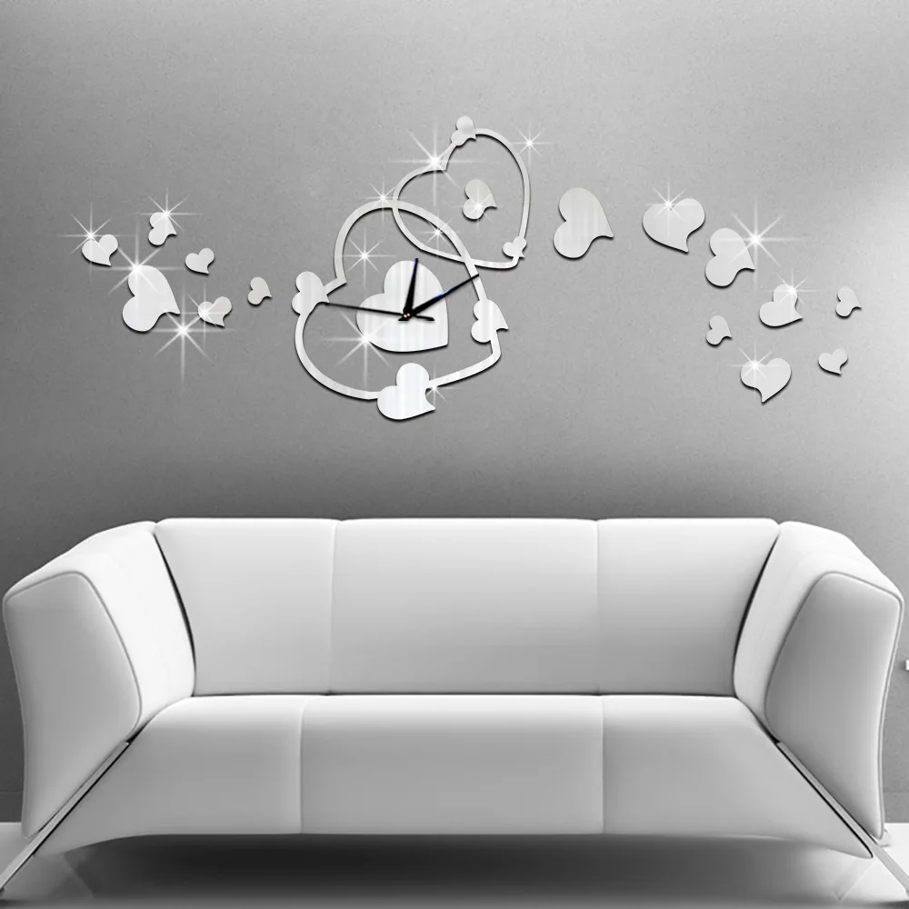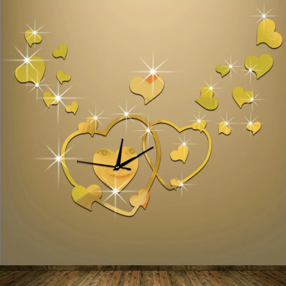 SPECIAL OFFERS Decorate Home 3D love heart clock art wall mirror sticker decoration Decals mural painting Removable Decor Wallpaper LF 1228 Online