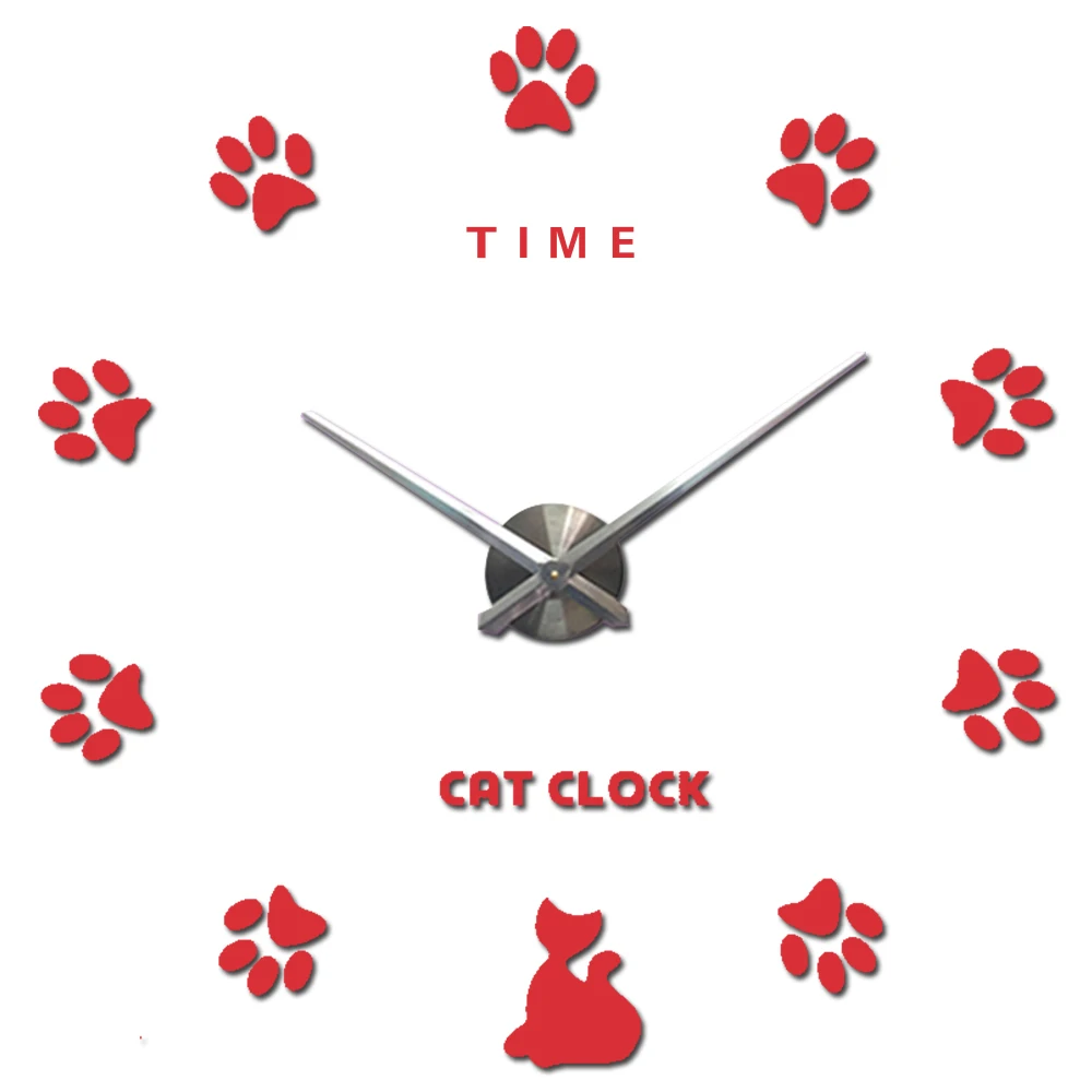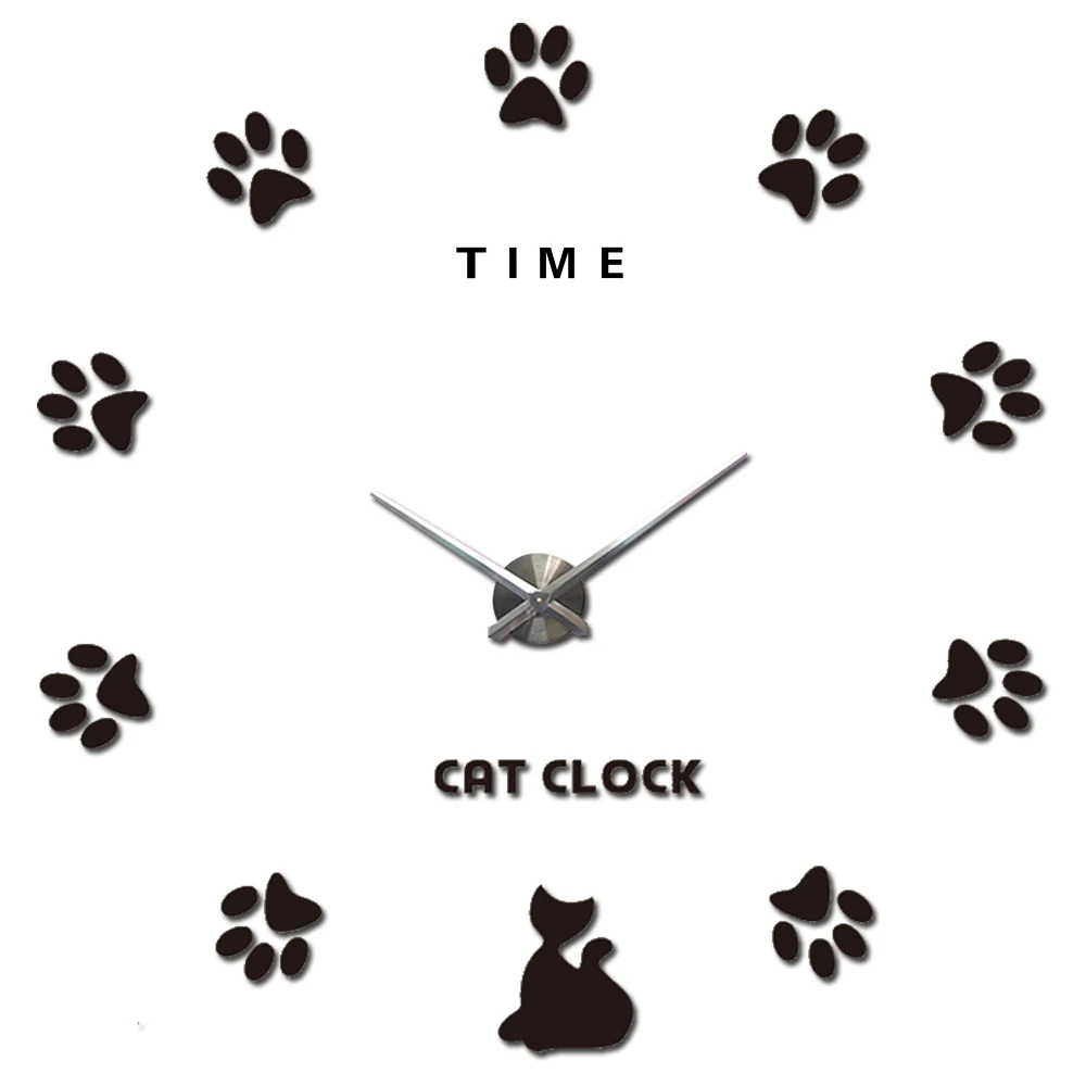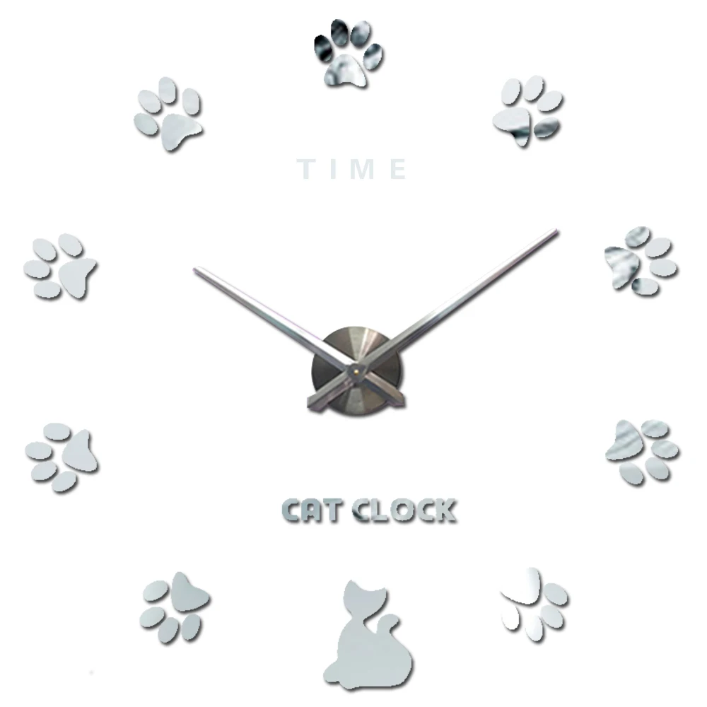 SPECIAL OFFERS Cute Cat Paw Large Wall Clock Silent Oversize Kitchen Digital Clock 3D DIY Acrylic Mirror Stickers Big Wall Clocks Time Letter Online