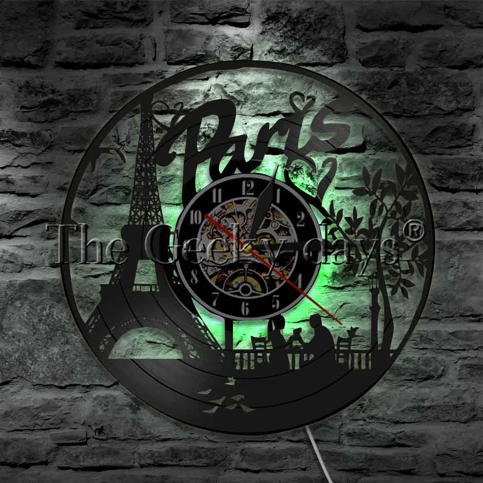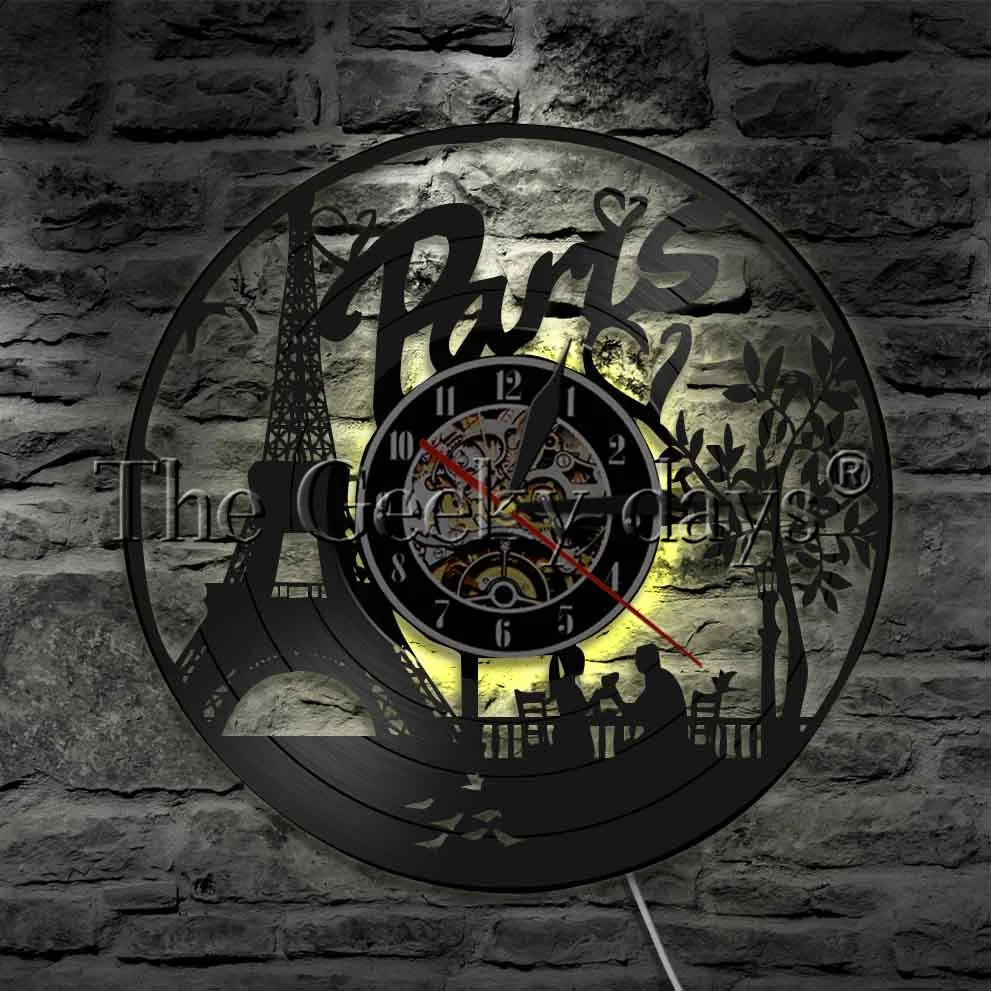 Best 1Piece Paris Eiffel Tower LED Lighting Wall Clock Vinyl Record Night Light Love 3D Decor RECOMMENDED TODAY Cheap BUY Limited