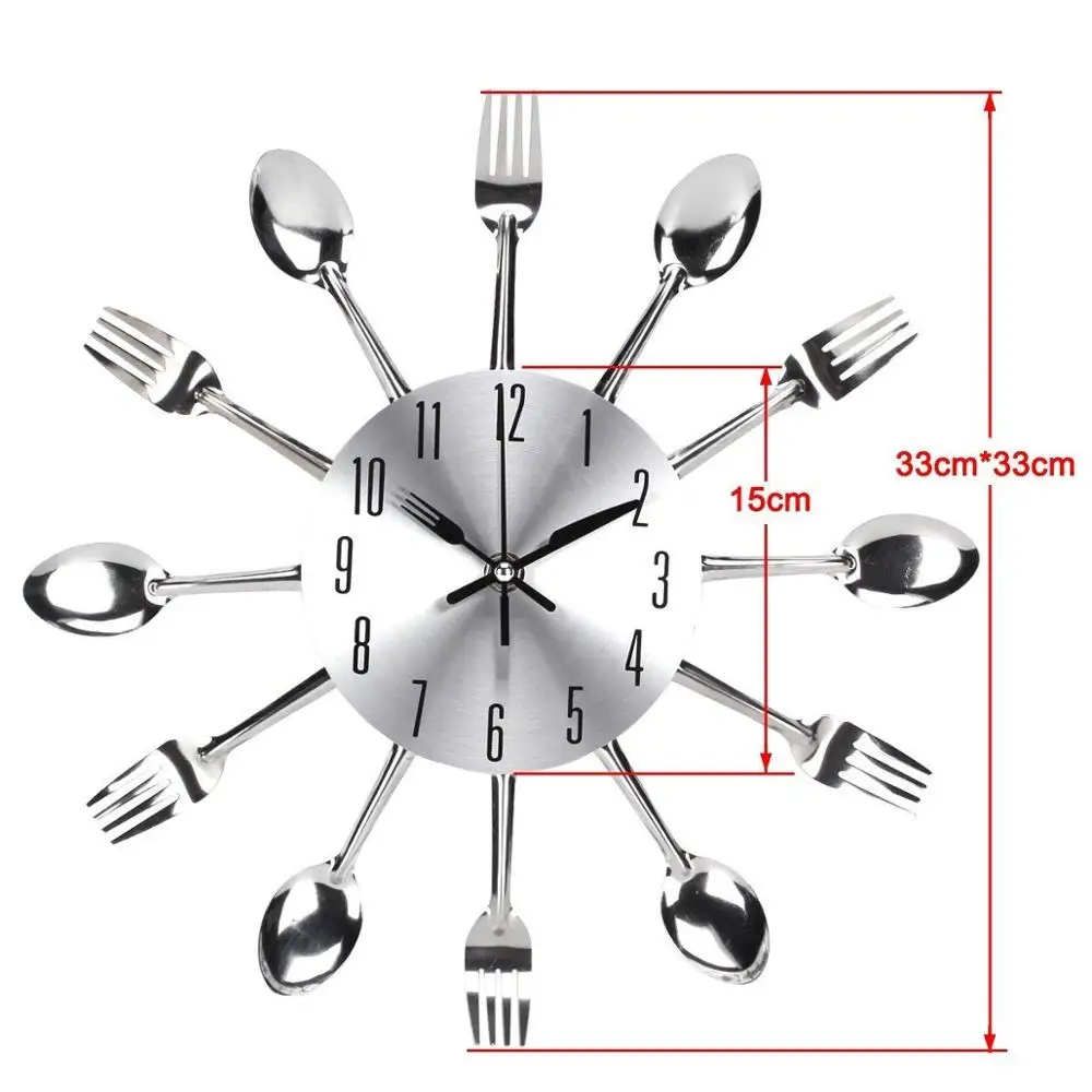 SPECIAL OFFERS Timelike Kitchen Wall Clock 3D Removable Modern Creative Cutlery Spoon Fork Wall Clock Mirror Wall Sticker Room Home Decoration Online