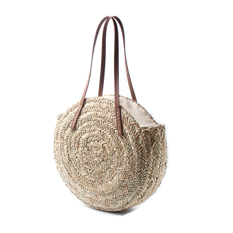 HOT OFFERS Fashion Round Straw Bags Rattan Women Shoulder Casual Wicker Woven Handbags Moroccan Palm Basket Beach Bag Summer Big Tote SPECIAL Online HOT PRICE Limited