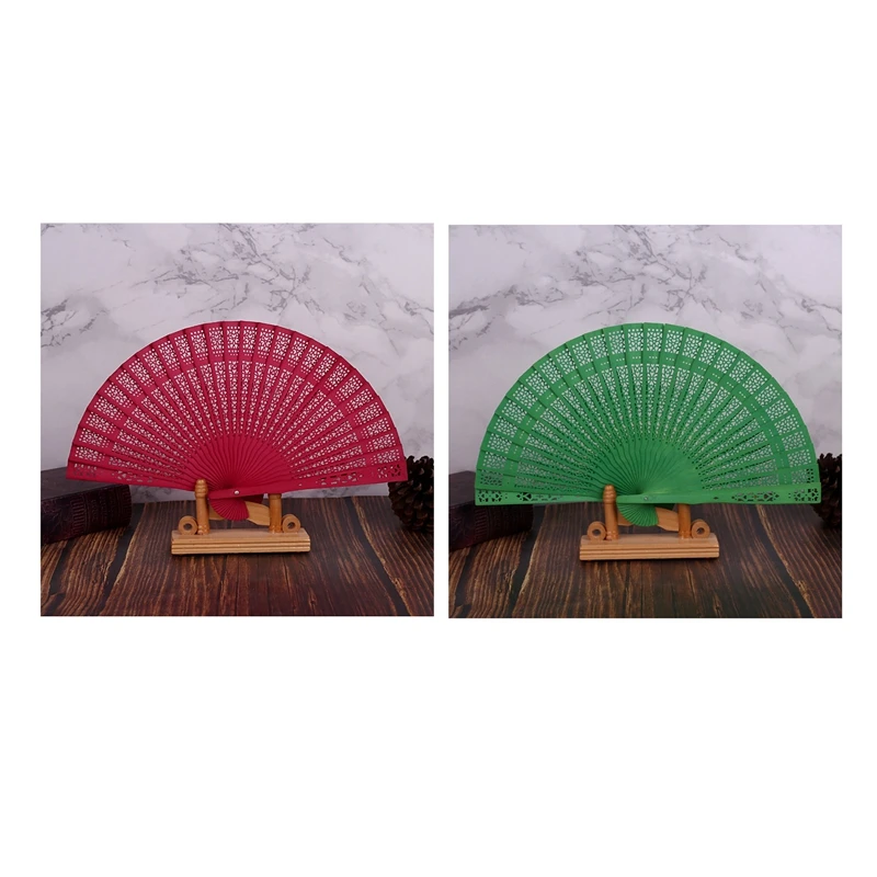 SPECIAL OFFERS Cheap SPECIAL PRICE 2 Pcs 8 Inch Chinese Japanese Folding Fan Wooden Hand Flower Bamboo Pocket For Home Decor Party Decoration Rose Red amp; Gree Limited