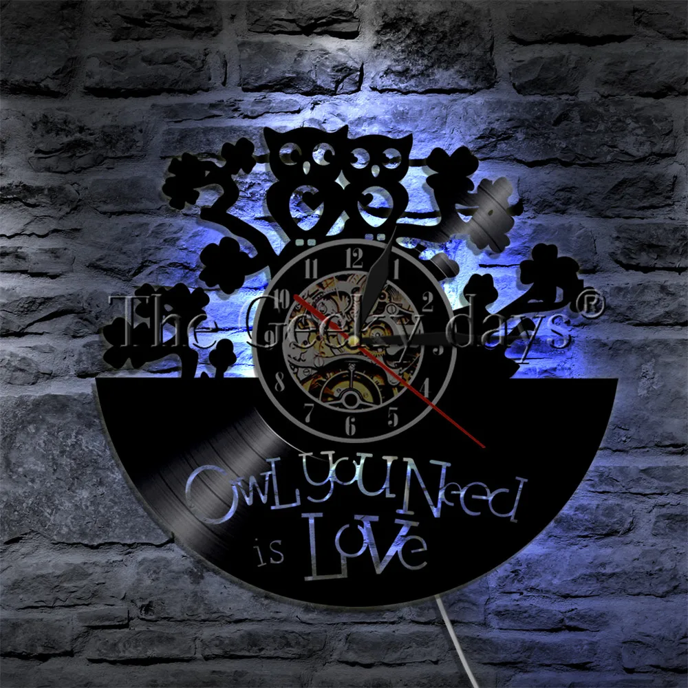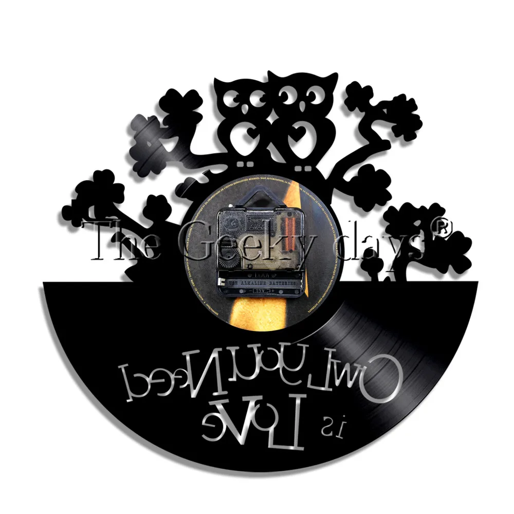 SPECIAL OFFERS 1Piece Owl You Need Is Love Antique Vintage Retro Vinyl Record Wall Clock Night Owls Decorative Wall Clock Valentines Gift Online