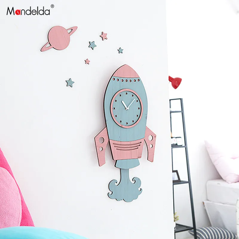 Dear definitely the Kids Nordic Minimalist Wall Clock Blue Cartoon Wall Watch Silent Bedroom Lovely Reloj Pared Infantil Creative Home Decor AA60WC RECOMMENDED TODAY