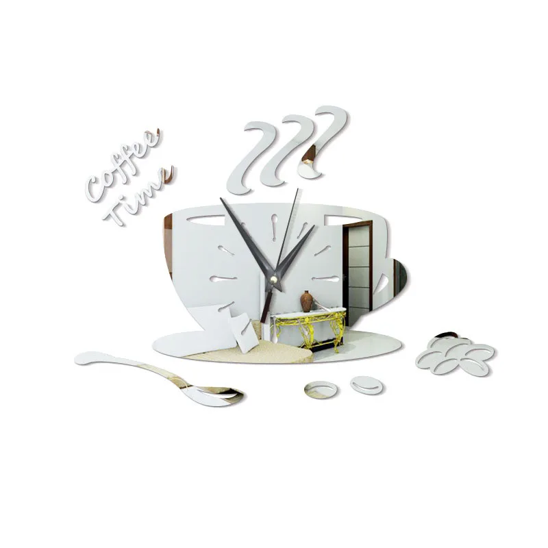 HOT OFFERS 1 SET New Modern DIY Clock Coffee Cup Wall Sticker Unique Acrylic Decor Kitchen Living Room Bedroom Decors 35*25cm Promo Best Price Buy BUY Limited