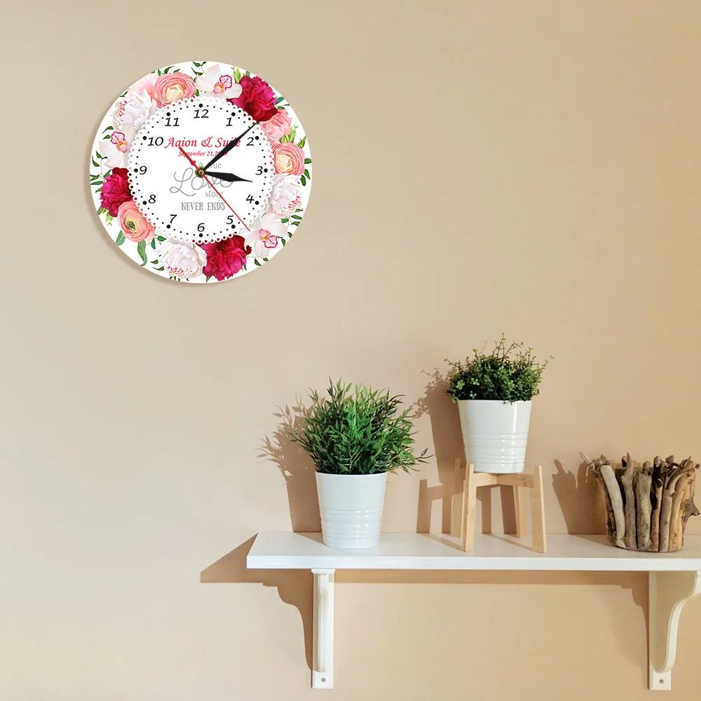 SPECIAL OFFERS A True Love Story Never Ends Custom Name Married Date Modern Wall Clock Anniversary Floral Wall Watch Personalized Wedding Gift Online