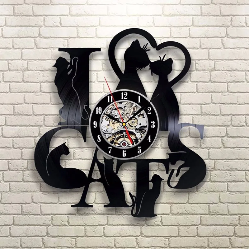 SPECIAL OFFERS BUY Now Vinyl Record LED Wall Clock With 7 Lighting I Love Cats 3D Decorative Vintage CD Clocks Hanging Watch Home Decor RECOMMENDED TODAY