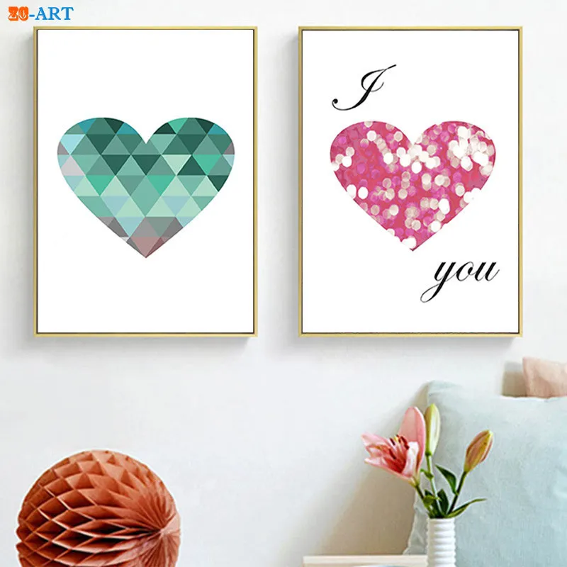 DISCOUNT definitely the Green Blue Heart Prints Sparkle Pink Heart Love Poster Wall Art Modern Canvas Painting Living Room Home Decor RECOMMENDED TODAY