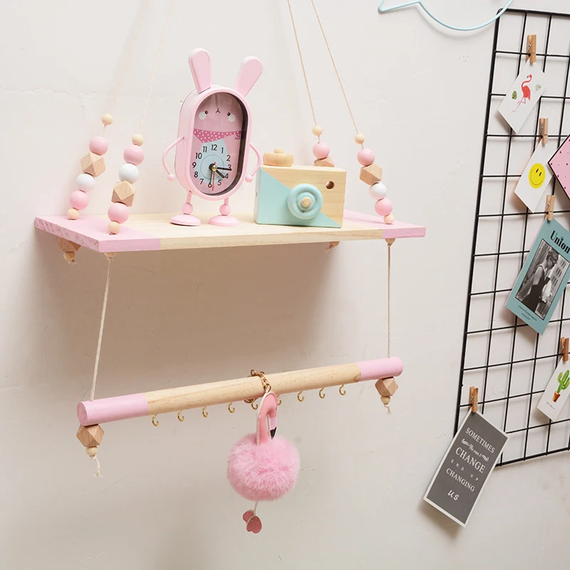 DISCOUNT definitely the Nordic Children Room Wood Hanging Decoratoin Wall Hanging Storage Shelf Clock Holder Clothing Hook Nordic Ornament Craft RECOMMENDED TODAY