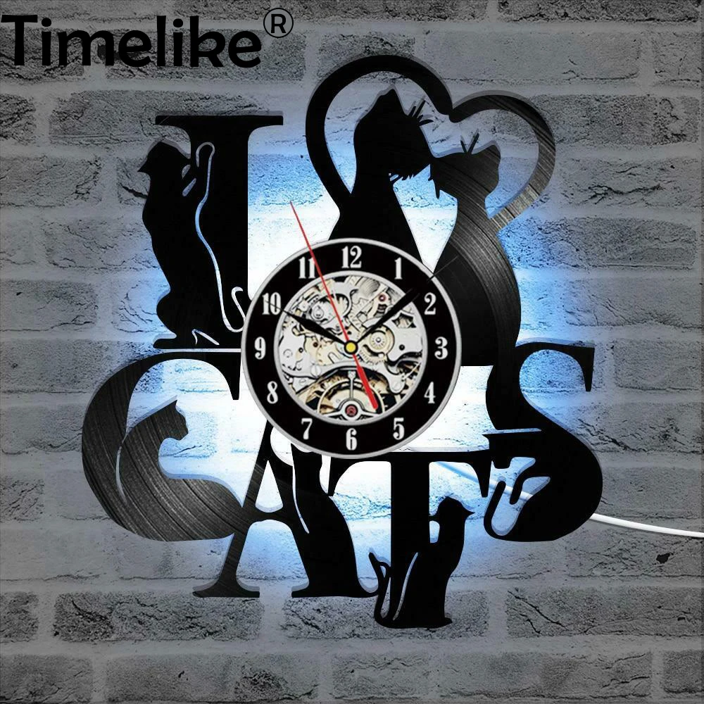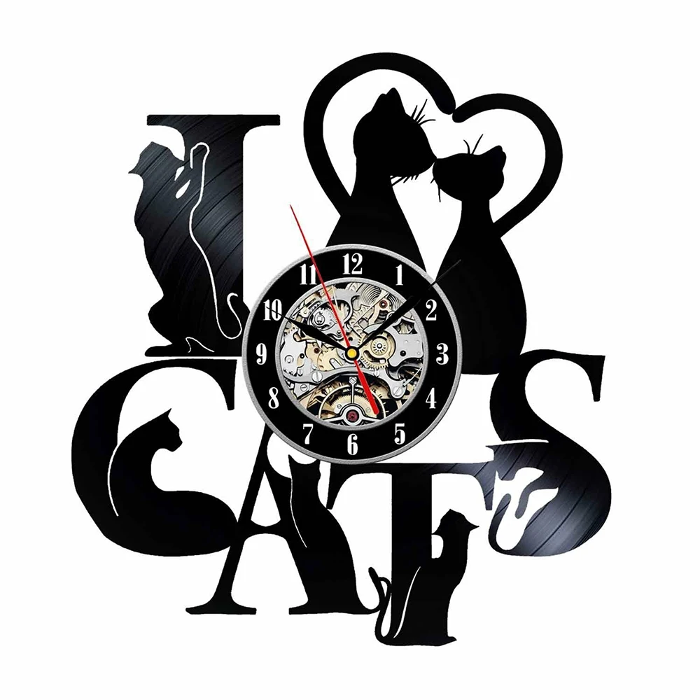 SPECIAL OFFERS Vinyl Clock I Love Cats Record Wall Clock Kitten Art Silent Unique Decor Clock 3D Hanging CD Vintage LED Vinyl Clocks 7 Cats one of the best