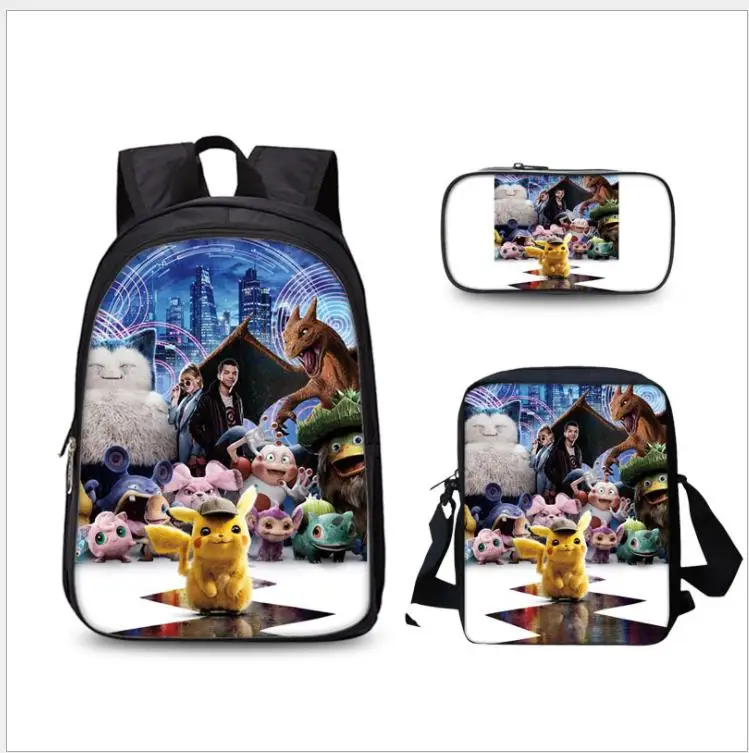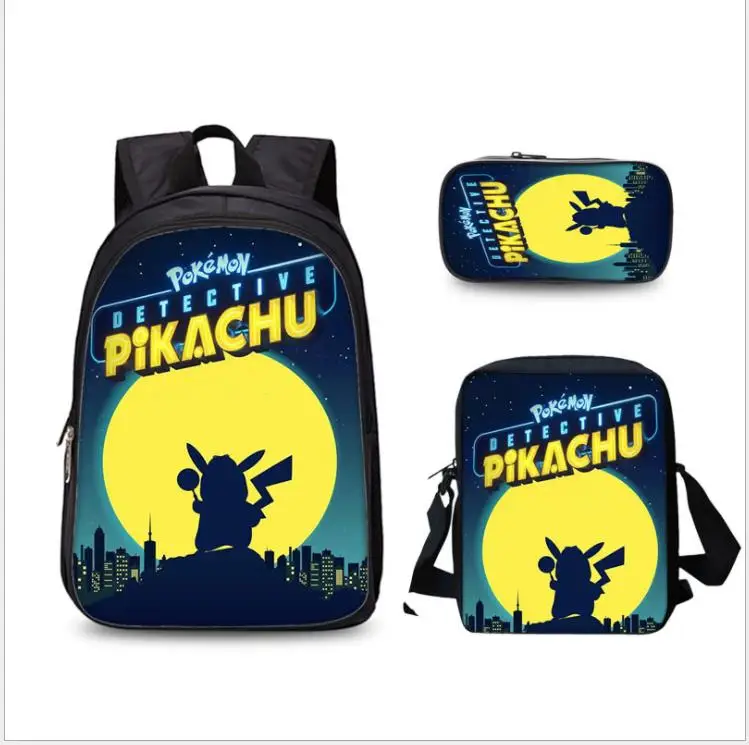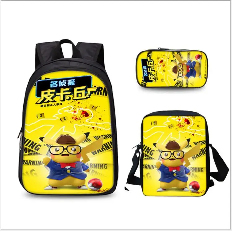 Dear definitely the 3pcs set Pokemon Detective Pikachu Bags Anime Cartoon School Bags For Boys Girls Gifts Two Layer Backpack For Children Mochilas RECOMMENDED TODAY