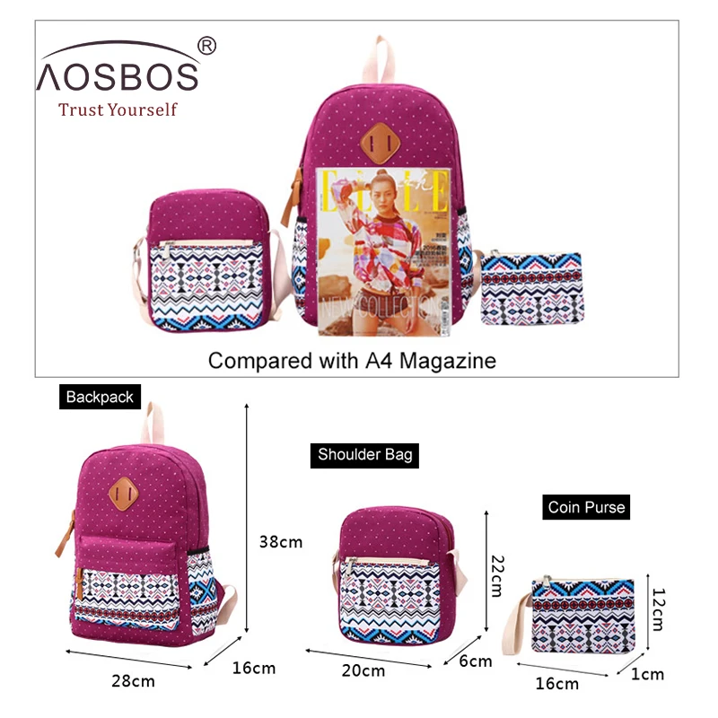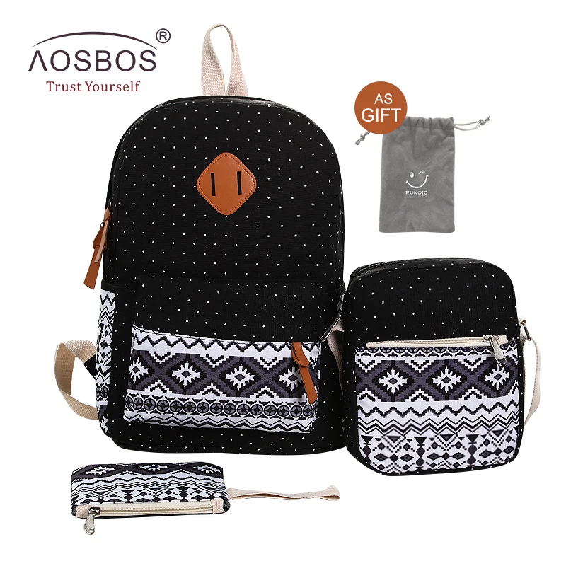 SPECIAL OFFERS Aosbos 3Pcs set Stylish Printing Canvas School Bags for Teenage Girls Vintage Geometric Pattern Female Backpacks mochila escolar one of the best