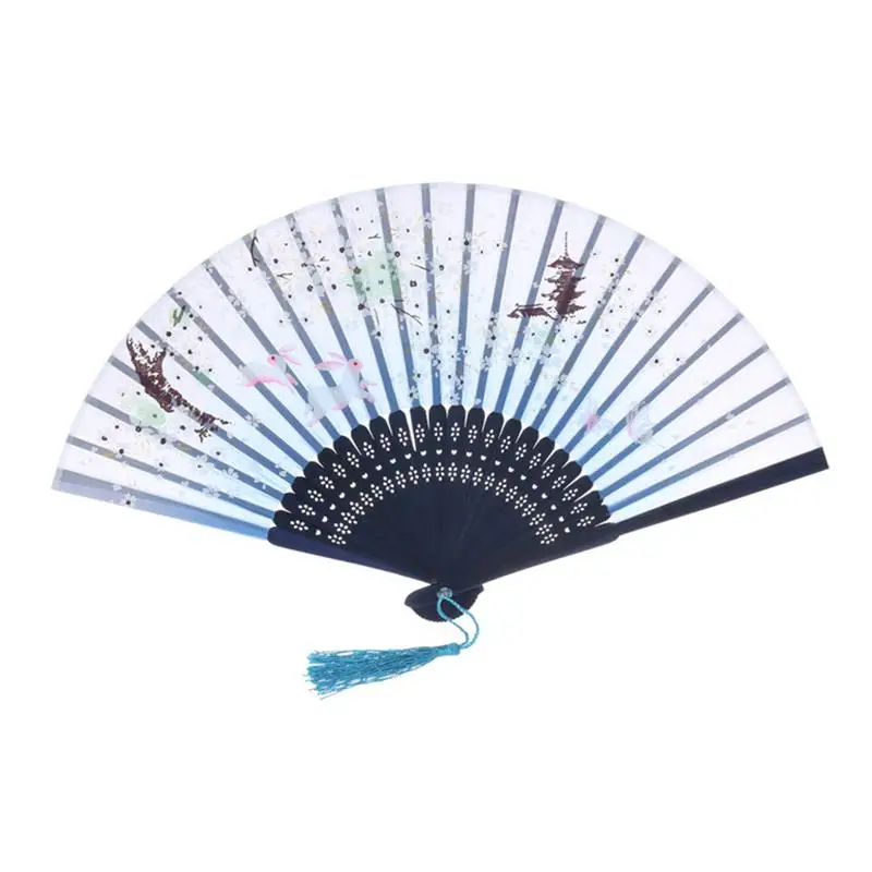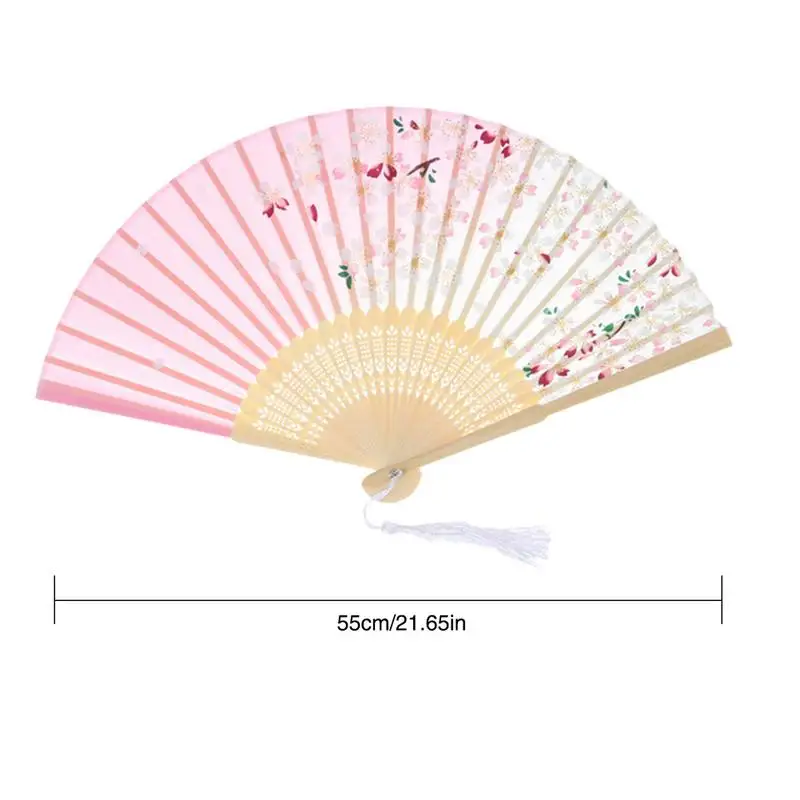 SPECIAL OFFERS Chinese Style Decorative Bamboo Fans Lace Fabric Silk Folding Hand Held Dance Fans Flower Party Wedding Prom Online