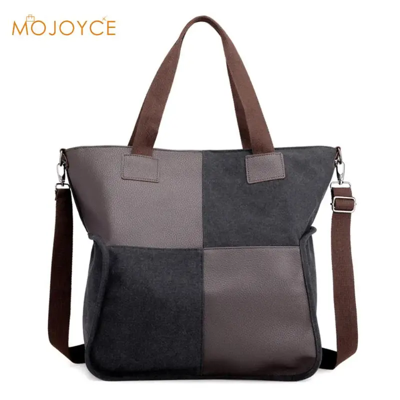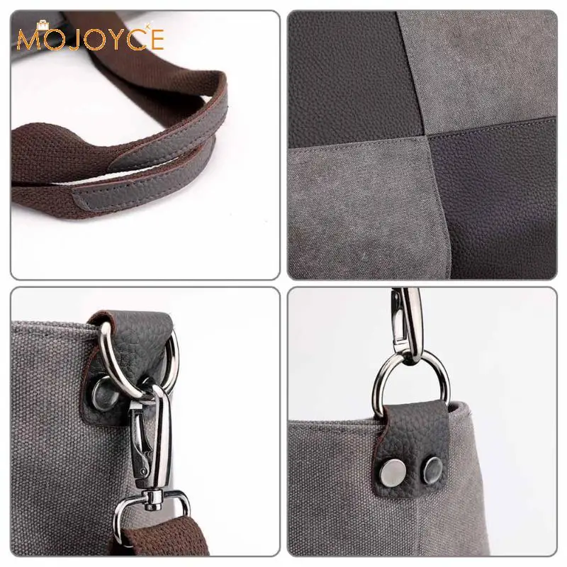 HOT OFFERS Unisex Splicing Leather Canvas Plaid Shoulder Messenger Handbags Women Men Large Capacity Crossbody Bags Torebki Damskie 2019 Promo Price BUY Now LIMITED DISCOUNT TODAY