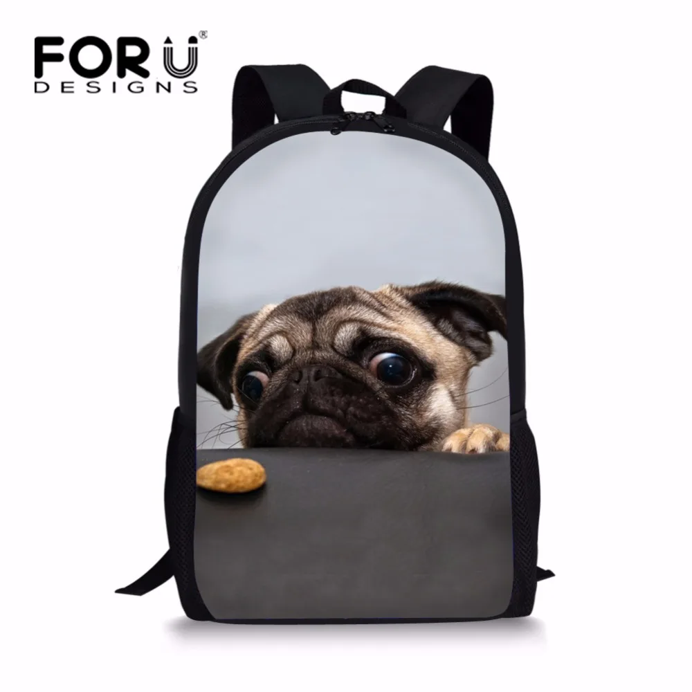 SPECIAL OFFERS BUY Now FORUDESIGNS Grey Pug Dog School Bag Cute Primary Boys Girls Animal Schoolbag Preppy Style Child Bookbag For Children 16inch RECOMMENDED TODAY