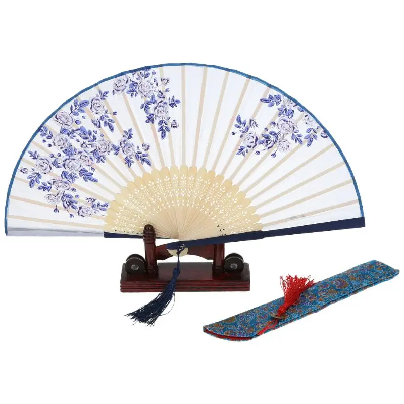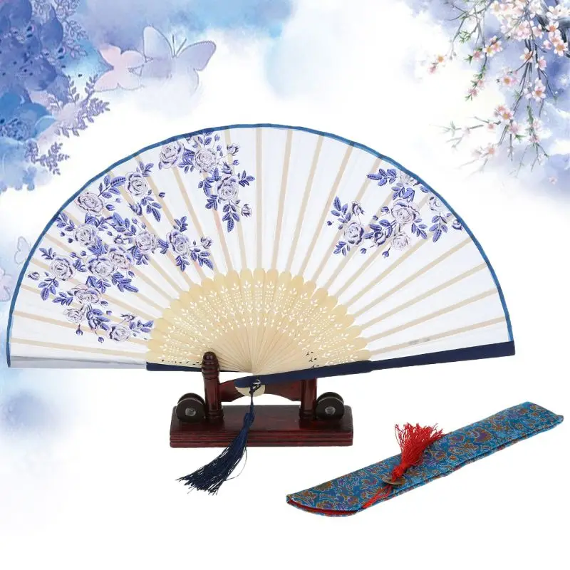 SPECIAL OFFERS Vintage Chinese Folding Hand Held Fan Japanese Rose Flower Silk Bamboo Wedding Party Dancing Decor Gift Online