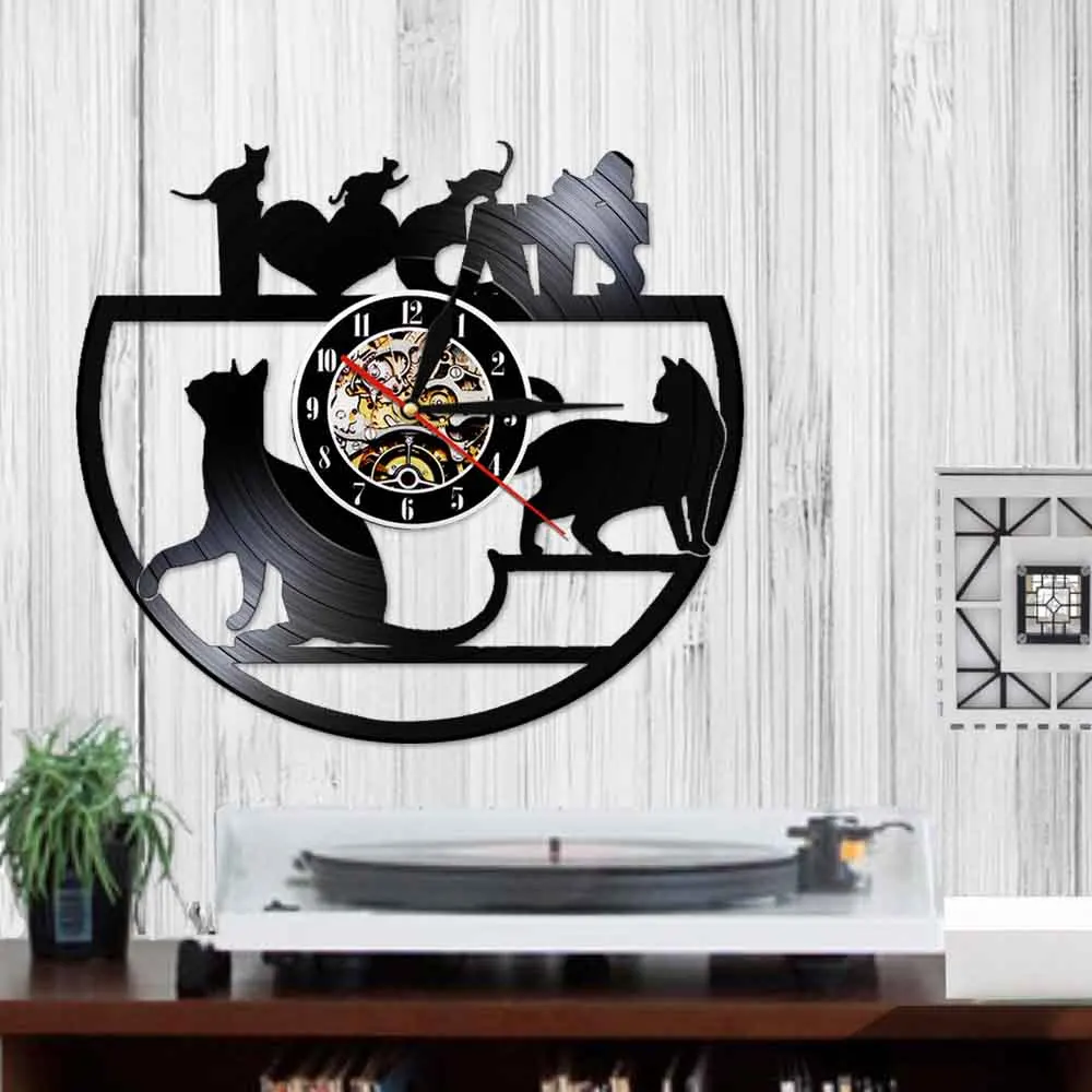 Best Modern Black Love Cats Home Decor Orologio Muro Livingroom Creative Vintage LED Vinyl Watch Wall Kitten Art Silent Unique Clock RECOMMENDED TODAY BUY Now LIMITED DISCOUNT TODAY