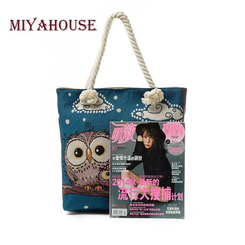DISCOUNT my personal favorite MIYAHOUSE Owl Family Printed Women Shopping Bag Summer Large Capacity Ladies Beach Shoulder Bag Hemp Rope Handle Design Handbag RECOMMENDED TODAY