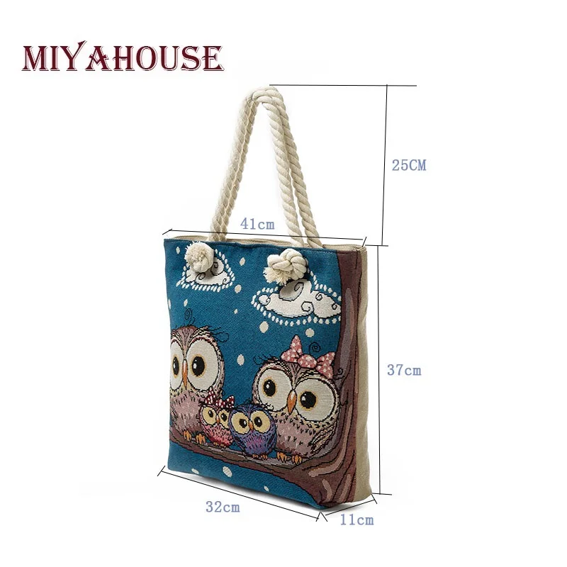 buy MIYAHOUSE Owl Family Printed Women Shopping Bag Summer Large Capacity Ladies Beach Shoulder Hemp Rope Handle Design Handbag RECOMMENDED TODAY BUY Now TODAY