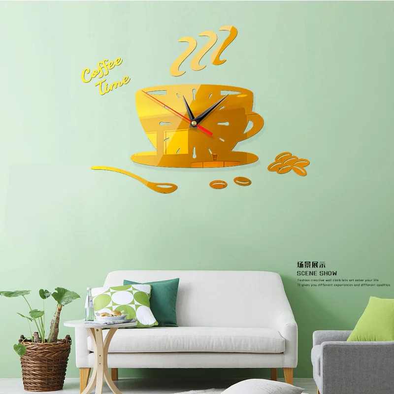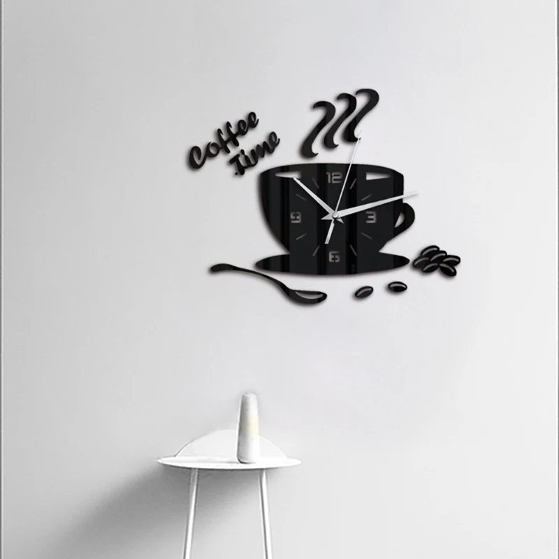 DISCOUNT my personal favorite 3D DIY Coffee Clock Acrylic Wall Clock Modern Kitchen Home Decor Cup Shape Wall Sticker Clock RECOMMENDED TODAY