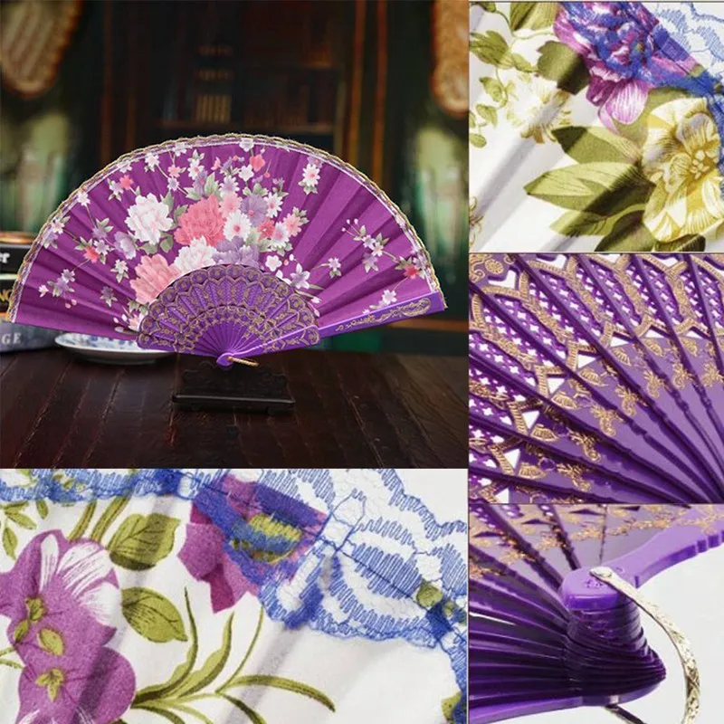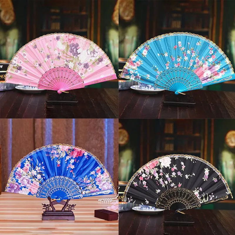 SPECIAL OFFERS Summer Chinese Spanish Style Dance Wedding Party Lace Silk Folding Hand Held Flower Fan Gift Colorful Dropshipping Online