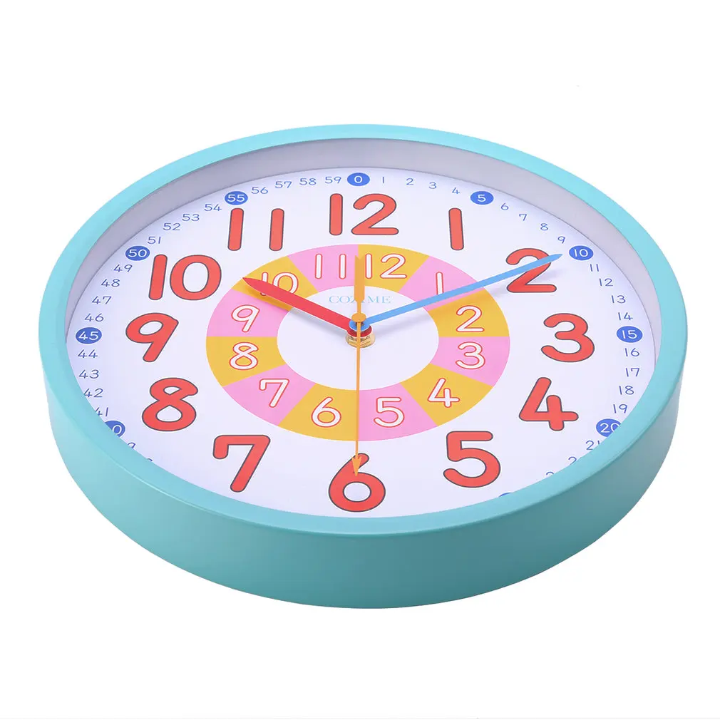 SPECIAL OFFERS Buy BUY 12 Inch Blue Metal Frame Decorative Round Colorful Lovely Wall Clock Silent Movement For Children To Learn Teaching Limited