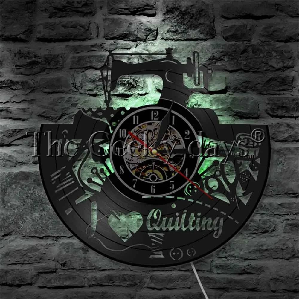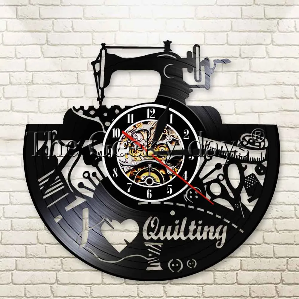 SPECIAL OFFERS BUY Now 1Piece I Love Quilting Sewing Machine Tailor Shop Modern Home Decor Wall Hanging Tools Vinyl Record Clock LIMITED DISCOUNT TODAY