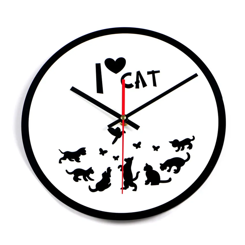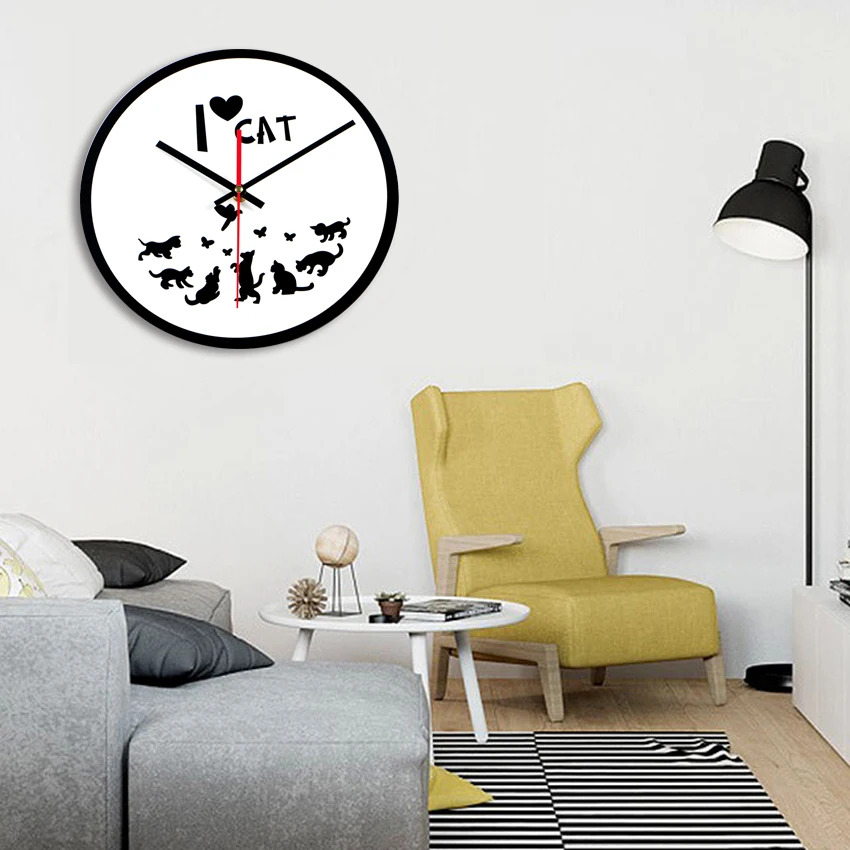 SPECIAL OFFERS 2017 Cat Wall Clock Black White I Love Cat Clock Silent Home Decoration Acrylic Wall Watch Living Room Relogio De Parede Gift Online