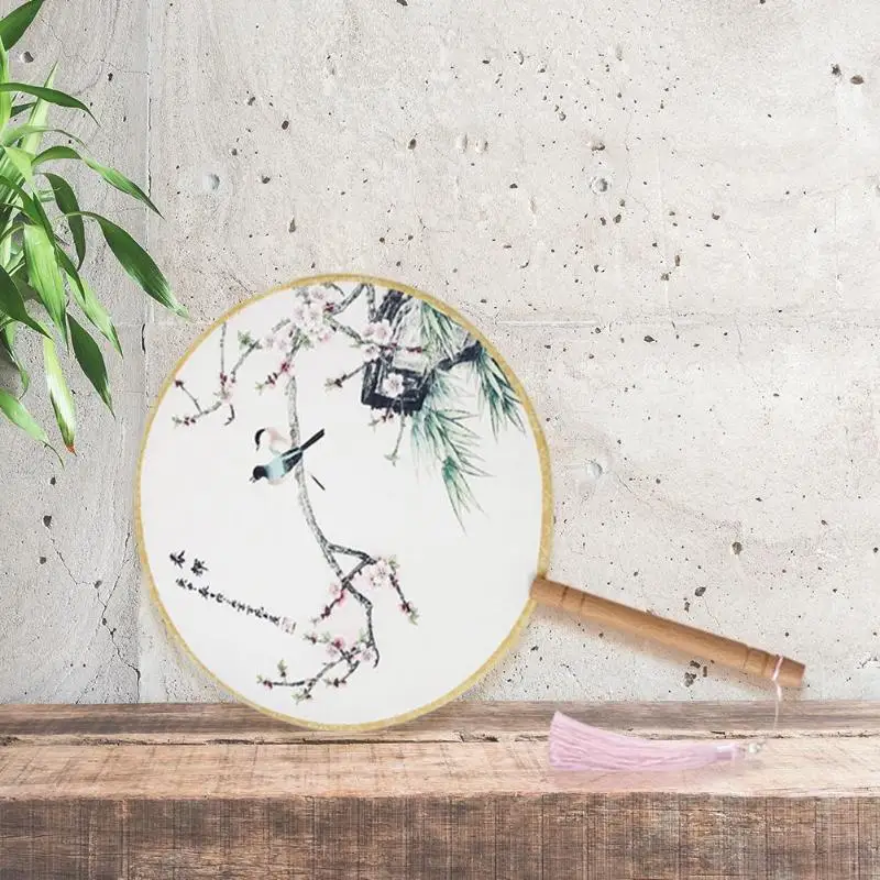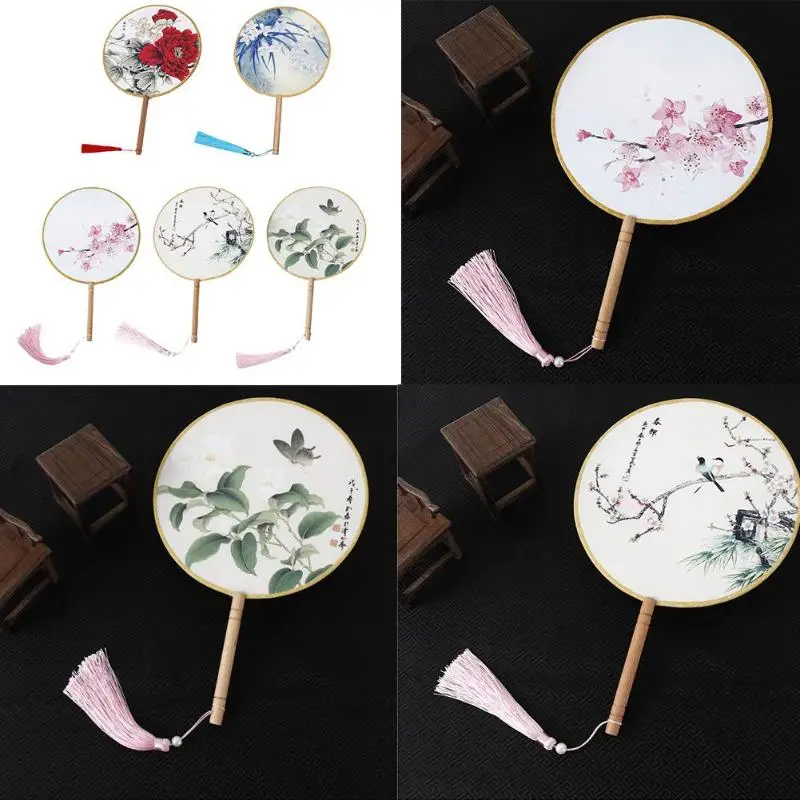SPECIAL OFFERS Chinese Traditional Silk Bamboo Fan Tassel Antique Dance Flower Fan Arts Craft Can Place At Home For Collection Or Viewing Online