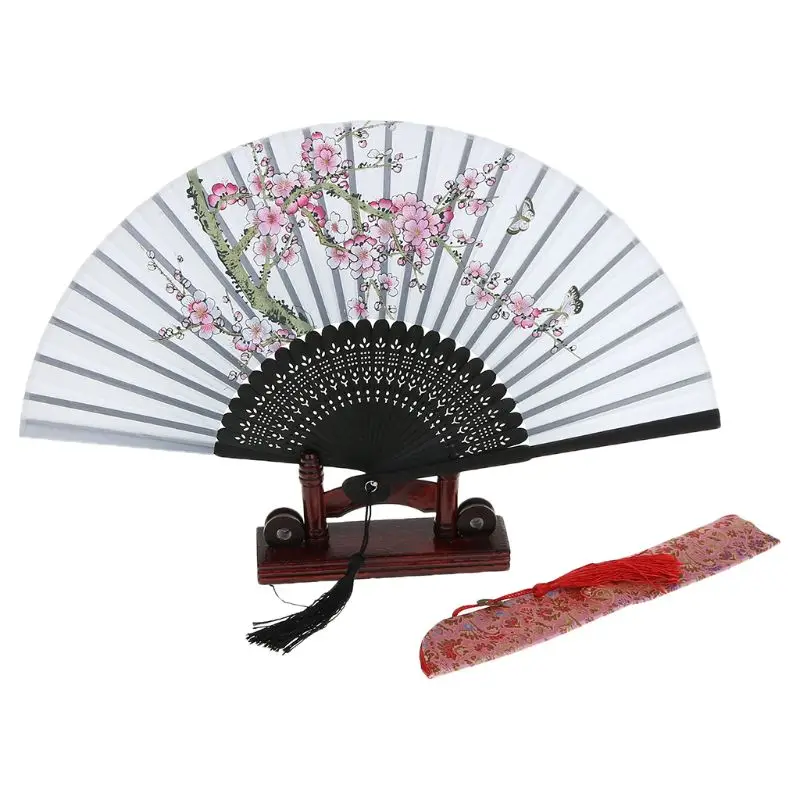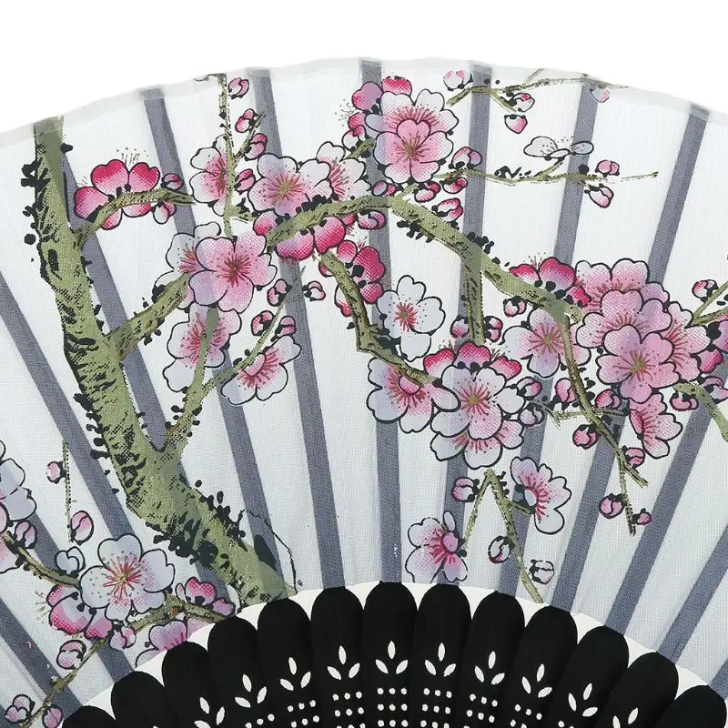 SPECIAL OFFERS Retro Japanese Chinese Folding Silk Hand Held Fan Peach Blossom Bamboo Wedding Party Dance Decor Gifts E65B Online