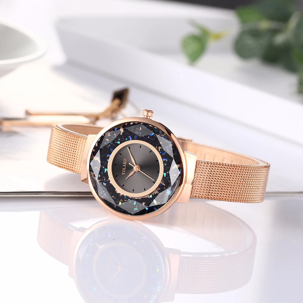 SPECIAL OFFERS YOLAKO Women Stainless Steel Mesh Belt Moving Diamond Watch Luxury Ladies Quartz Rhinestone Watches Clock Relogio Feminino Online