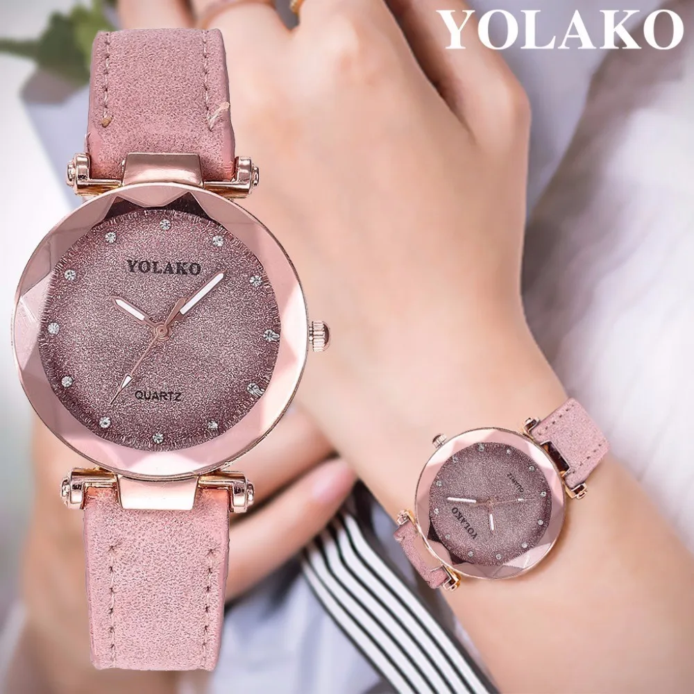 DISCOUNT definitely the Hot Fashion Women Romantic Starry Sky Wrist Watch Leather Rhinestone Designer Ladies YOLAKO Brand Clock Relogio Feminino RECOMMENDED TODAY