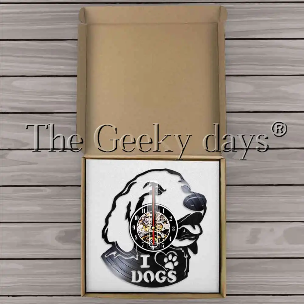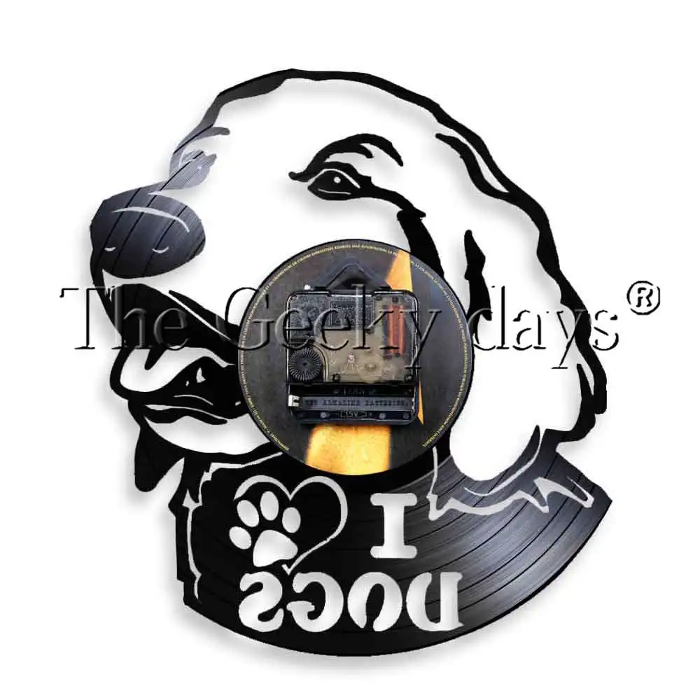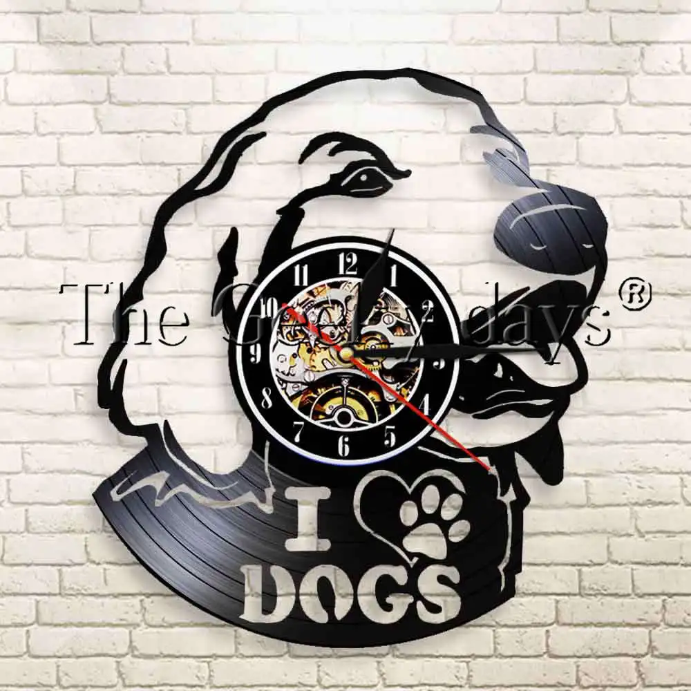 SPECIAL OFFERS 1Piece I Love Dogs Home Decor Labrador Head Puppy Pet Dog Vinyl Record Wall Clock Lovely Doggy Portrait Modern Wall Clock Online