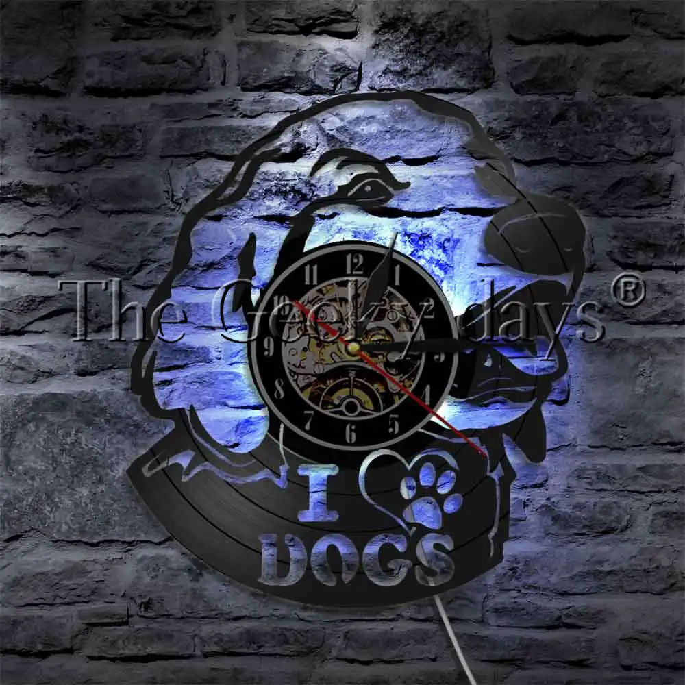 cheap 1Piece I Love Dogs Home Decor Labrador Head Puppy Pet Dog Vinyl Record Wall Clock Lovely Doggy Portrait Modern RECOMMENDED TODAY HOT OFFERS SPECIAL PRICE Limited